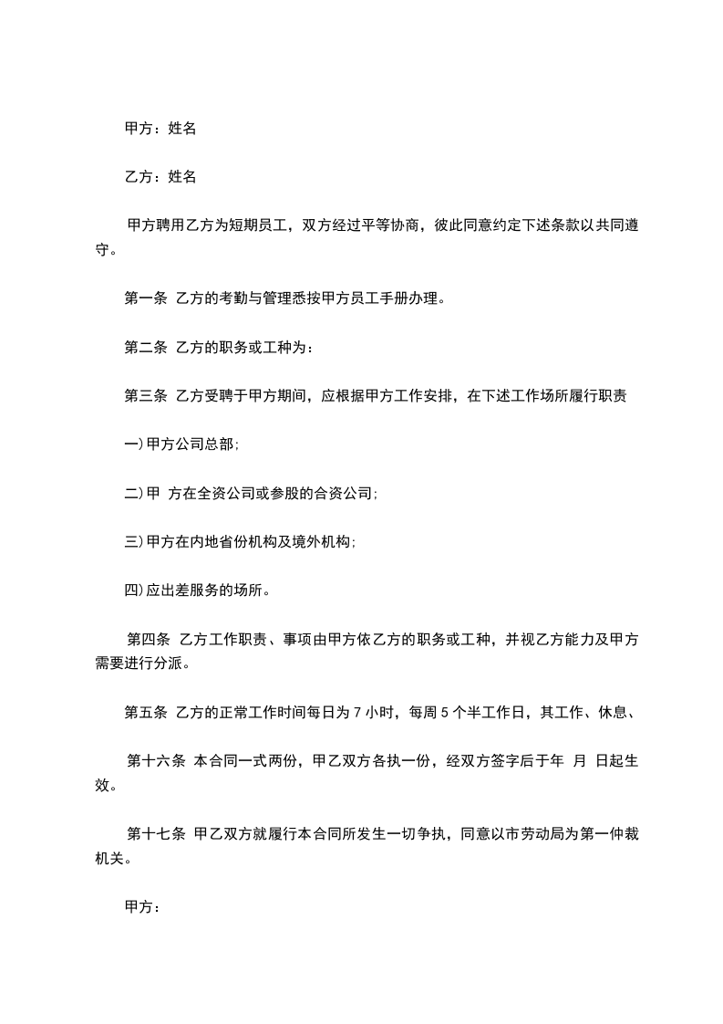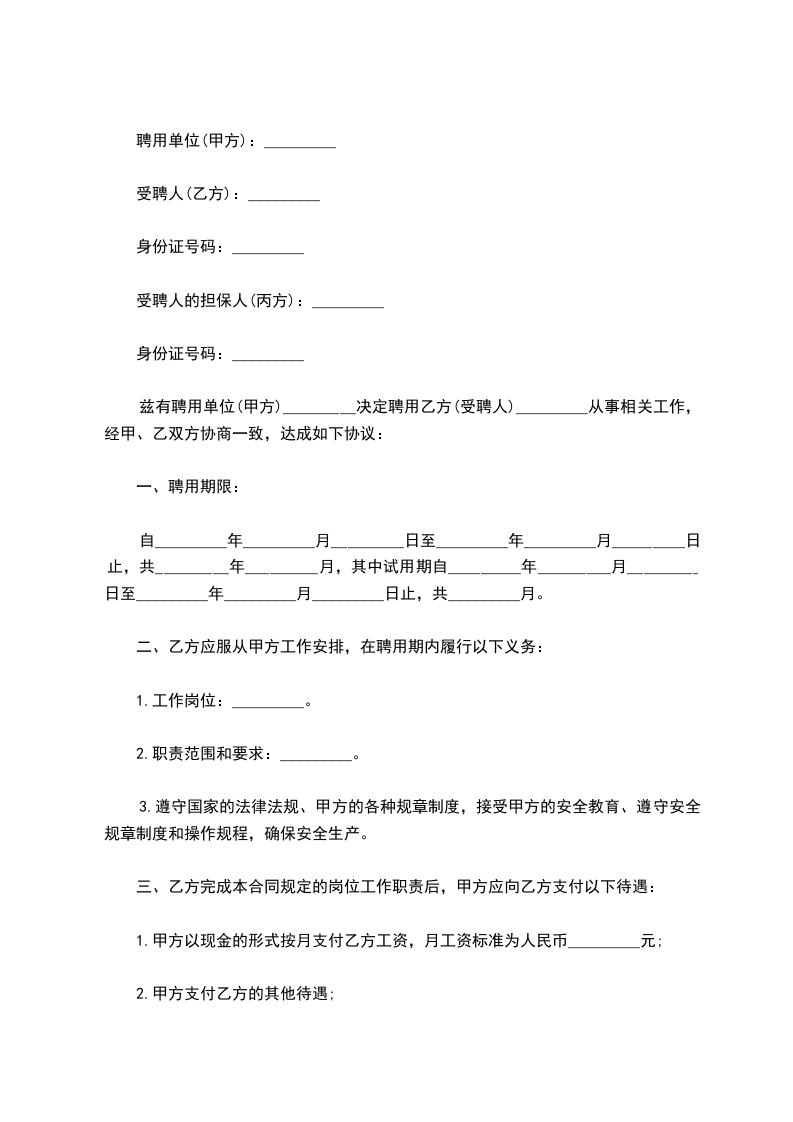 二、根据甲方的工作安排,聘用乙方在_____工作_______岗位。