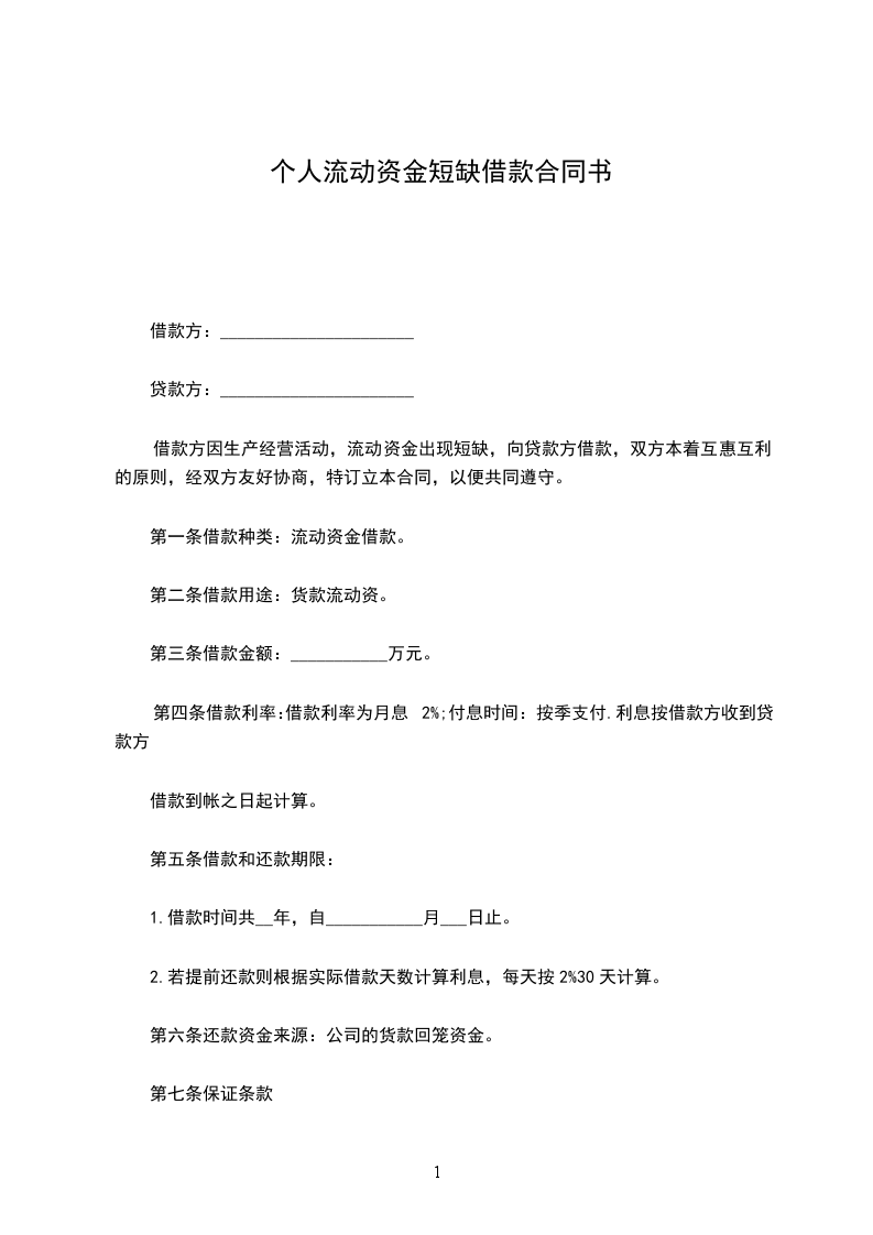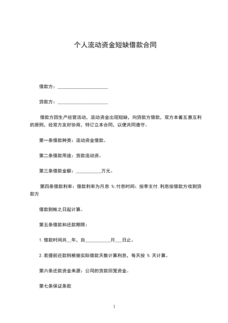 借款方因生产经营活动,流动资金出现短缺,向贷款方借款,双方本着互惠互利的原则,经双方友好协商,特订立本合同,以便共同遵守。