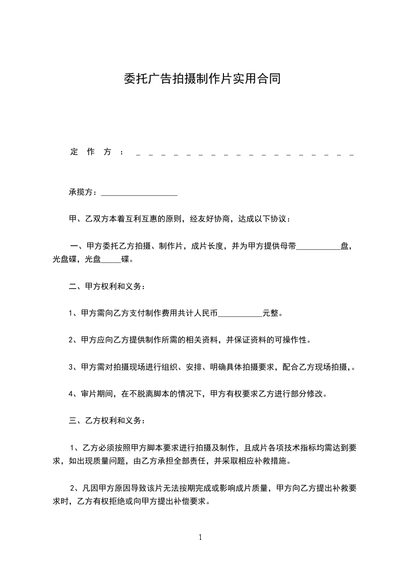 一、甲方委托乙方拍摄、制作(专题)片,成片长度,并为甲方提供母带___________盘,vcd光盘碟,dvd光盘_____碟。