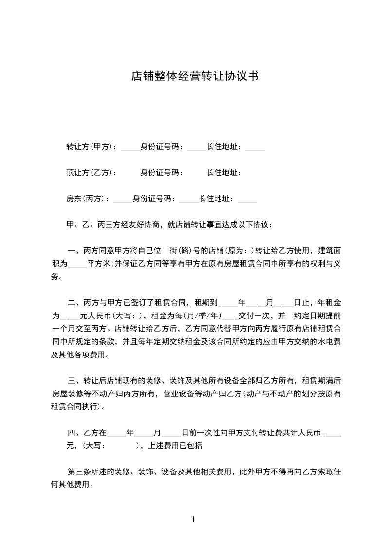 1、 本合同一经签订,甲乙双方对合同约定期限的商铺经营权交易即告完成,甲方不再负责调换和退款。