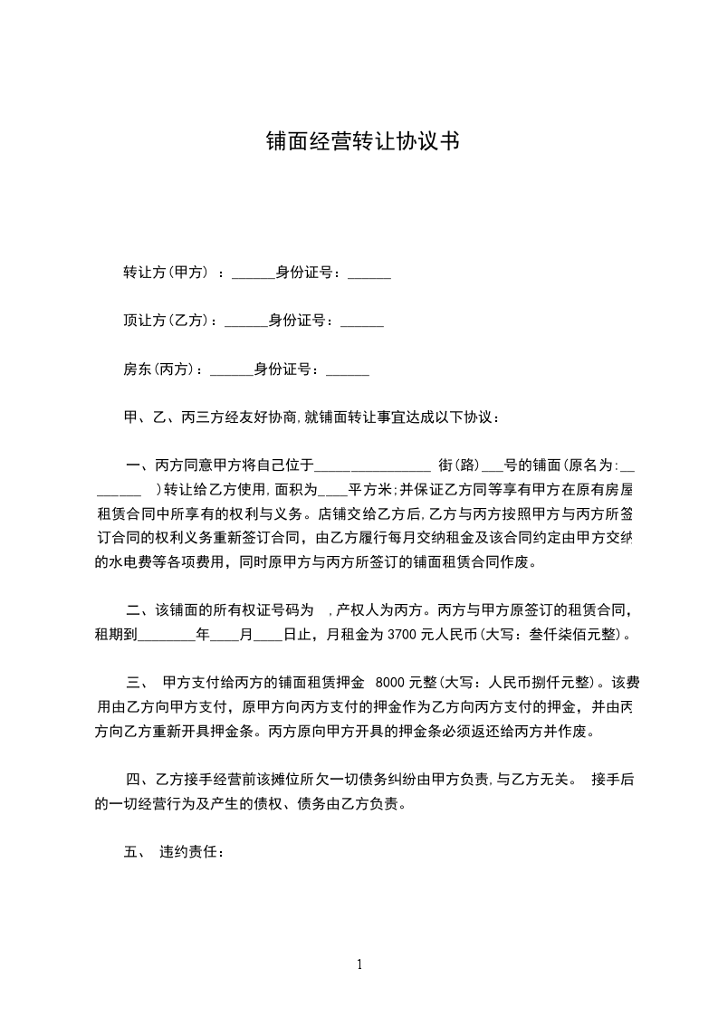 出让价款:该商铺五年经营权出让价款为(大写) , (小写) 。