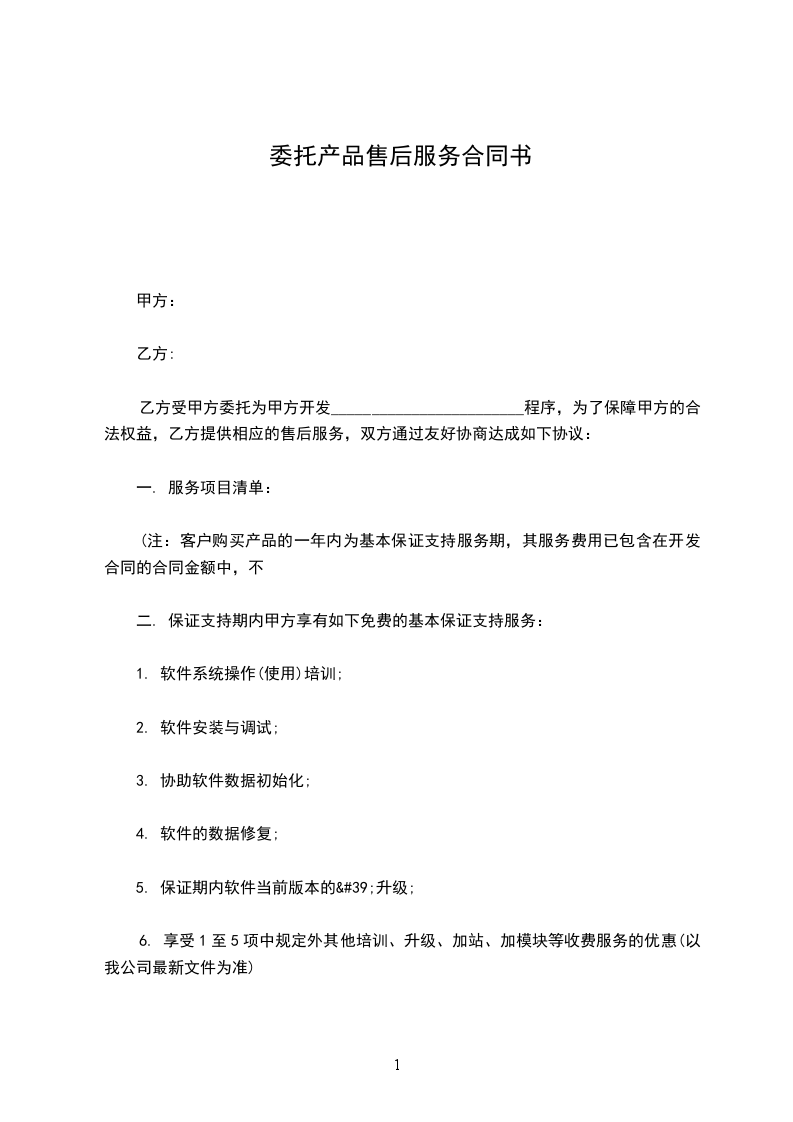 乙方受甲方委托为甲方开发________________________程序,为了保障甲方的合法权益,乙方提供相应的售后服务,双方通过友好协商达成如下协议: