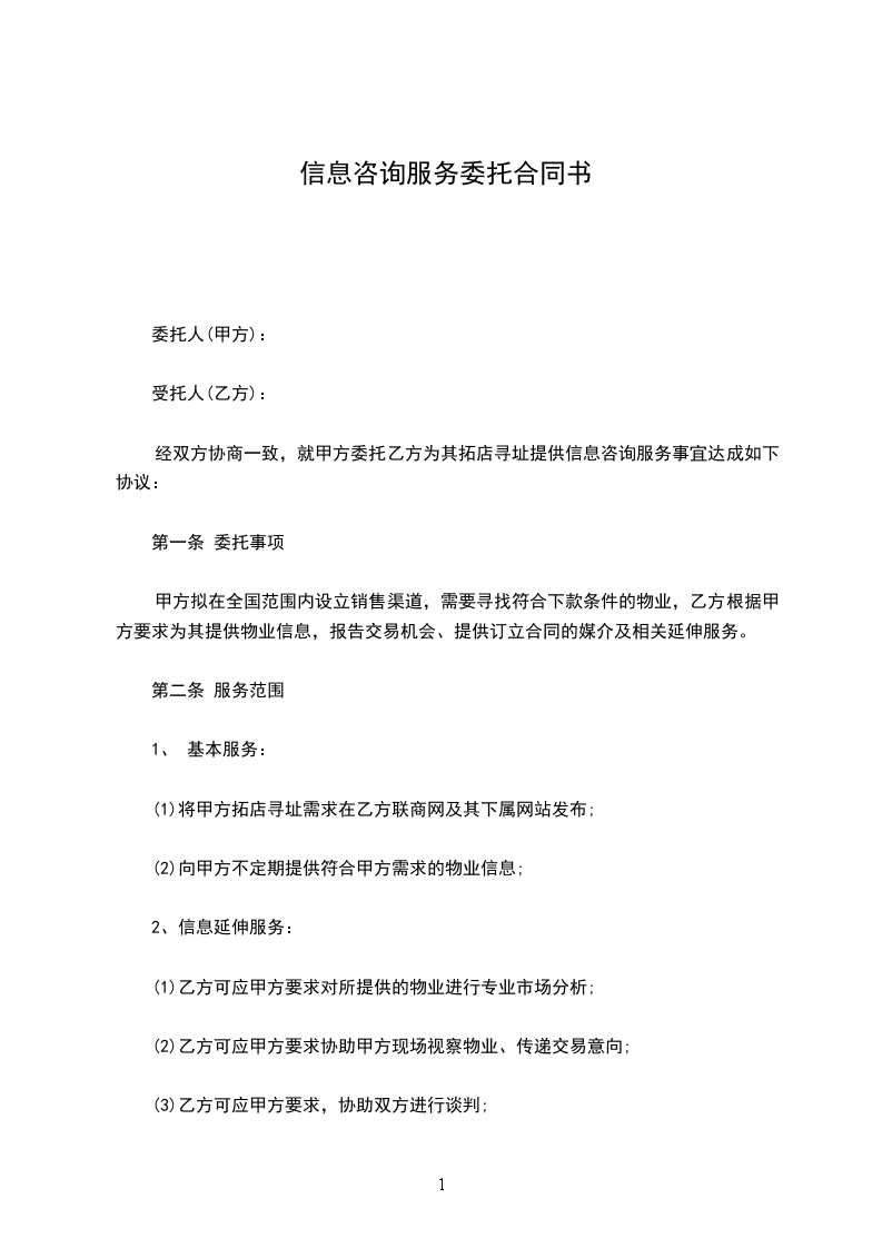 经双方协商一致,就甲方委托乙方为其拓店寻址提供信息咨询服务事宜达成如下协议: