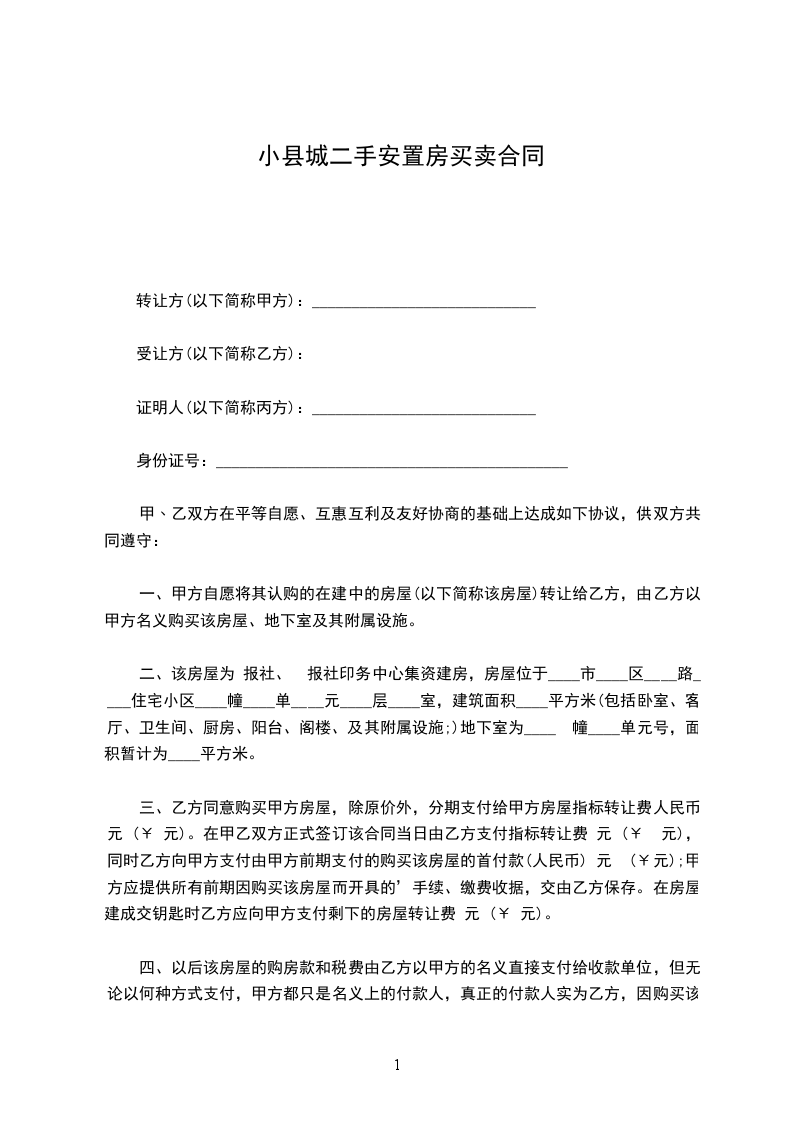 一、甲方自愿将其认购的在建中的房屋(以下简称该房屋)转让给乙方,由乙方以甲方名义购买该房屋、地下室及其附属设施。