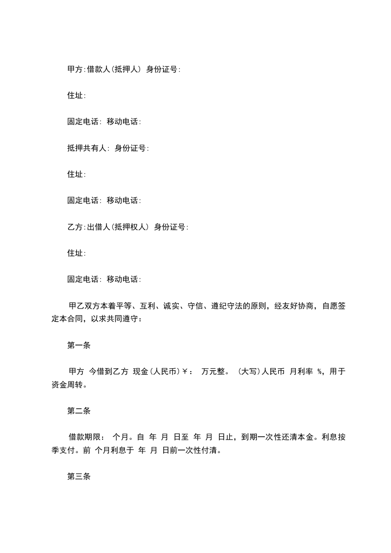 借款期限: 个月。自 年 月 日至 年 月 日止,到期一次性还清本金。利息按季支付。前 个月利息于 年 月 日前一次性付清。