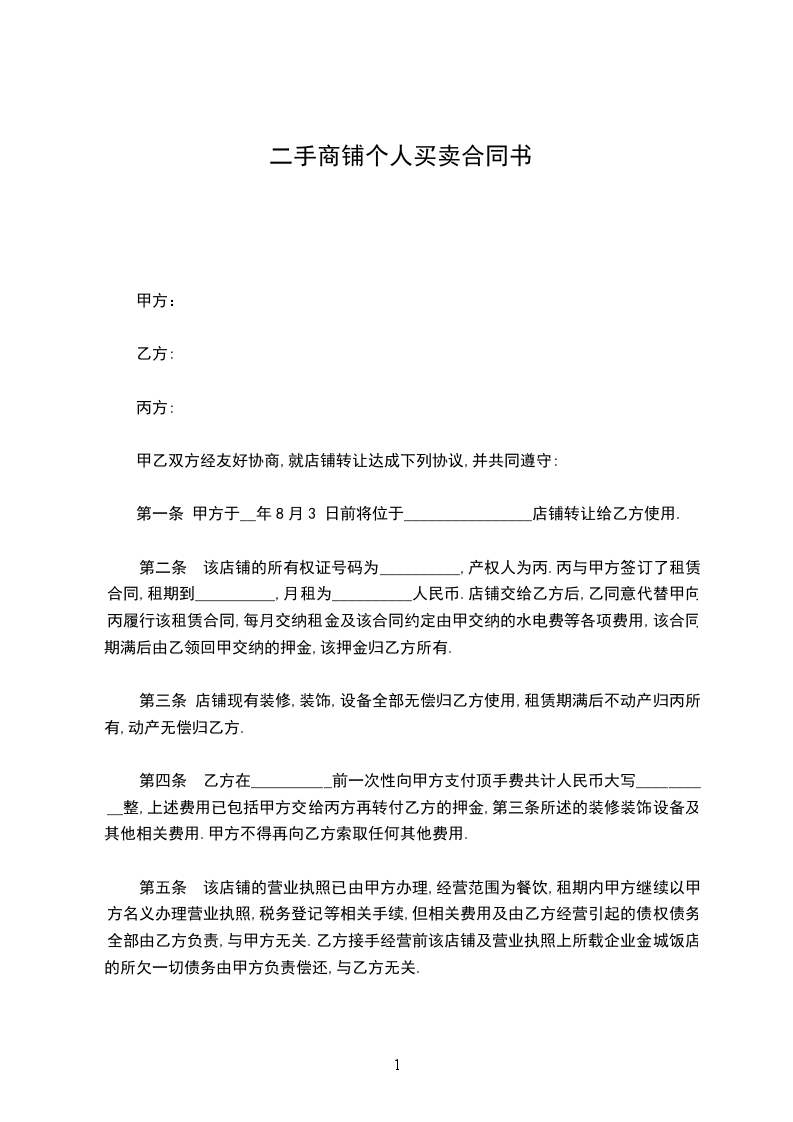 第一条 甲方于xx年8月31日前将位于________________店铺(面积为__平方米)转让给乙方使用。