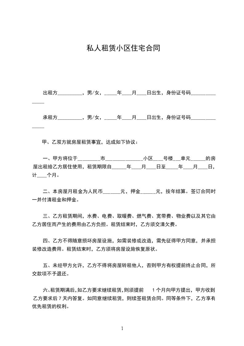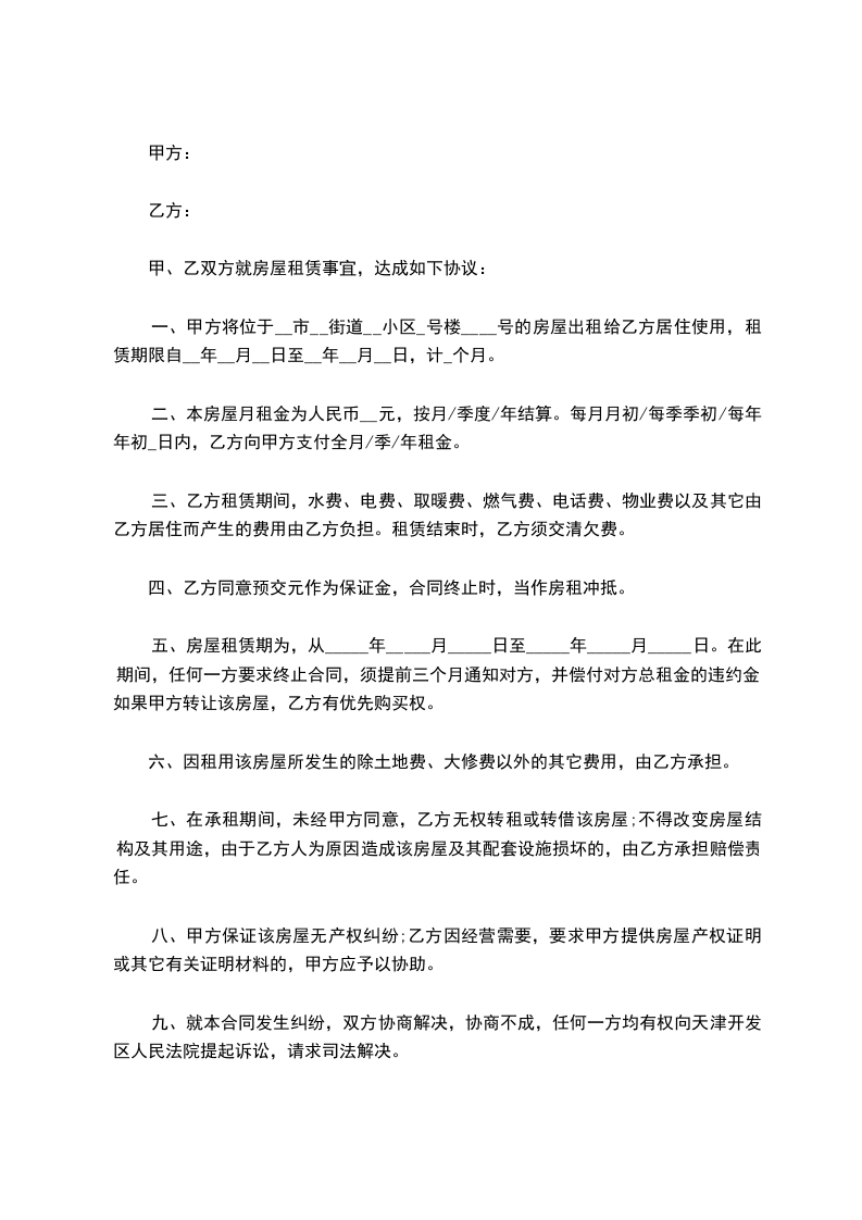 一、甲方将 租赁给乙方。 乙方承租 仅作住房使用。