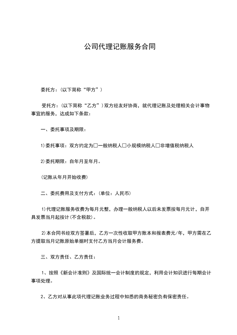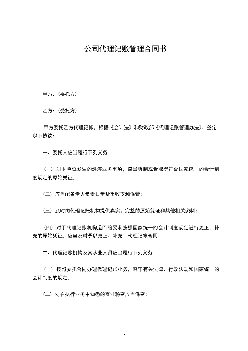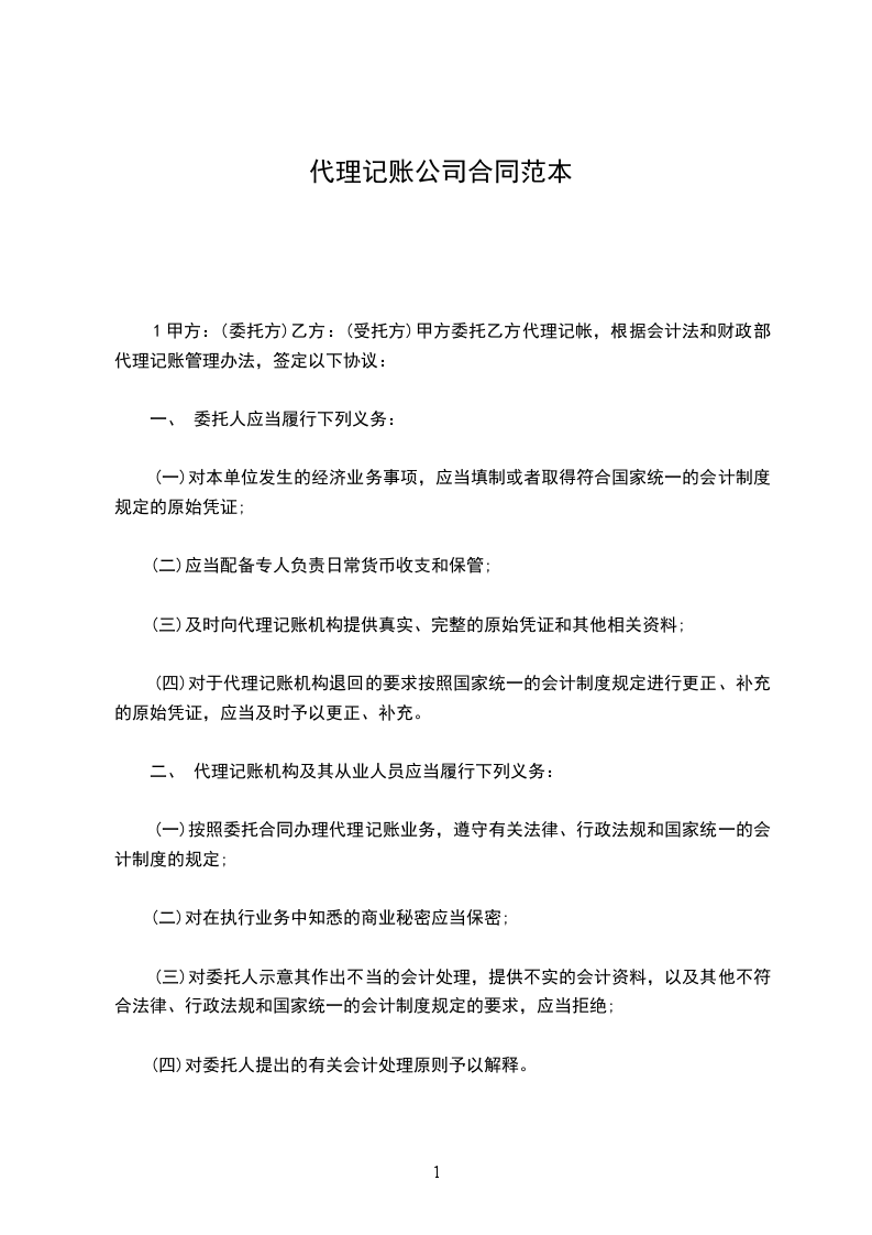 (四) 对委托人提出的有关会计处理原则予以解释,合同范本《代理记帐合同》。