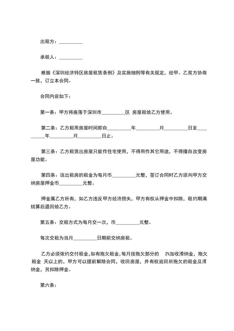依据 《深圳经济特区房屋租赁条例》 及其《实施细则》和《深圳经济特区出租屋管理若干规定》的有关规定,经甲、乙双方协商一致,订立本合同书,共同遵守。