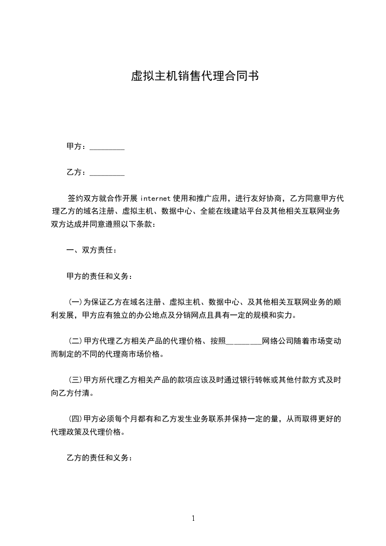 (一)为保证乙方在域名注册、虚拟主机、数据中心、及其他相关互联网业务的顺利发展,甲方应有独立的办公地点及分销网点且具有一定的规模和实力。