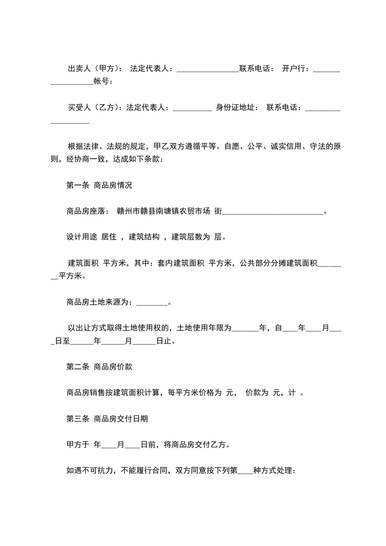 商品房座落: 赣州市赣县南塘镇农贸市场 街__________________________。