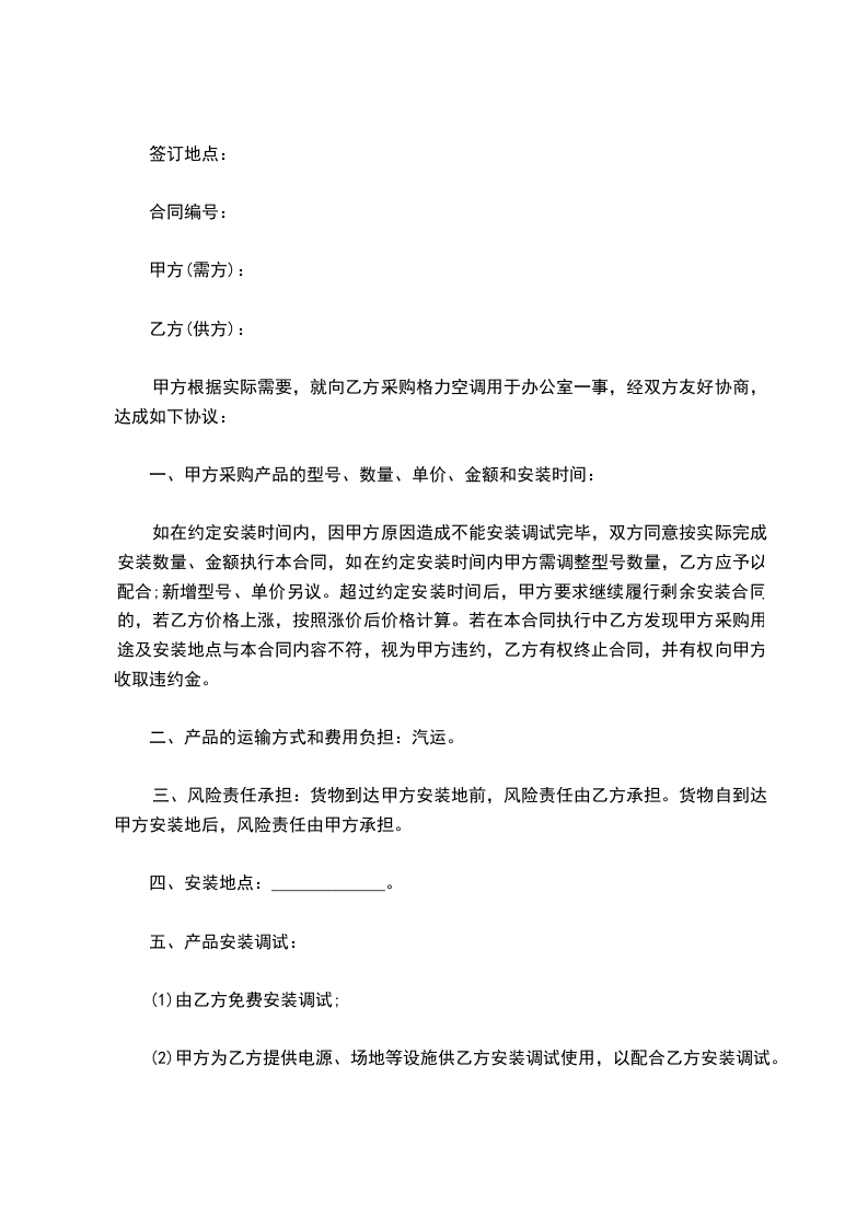 4、所有权转移:本工程验收合格后,所有权转移至甲方,在此之前空调设备所有权为乙方。