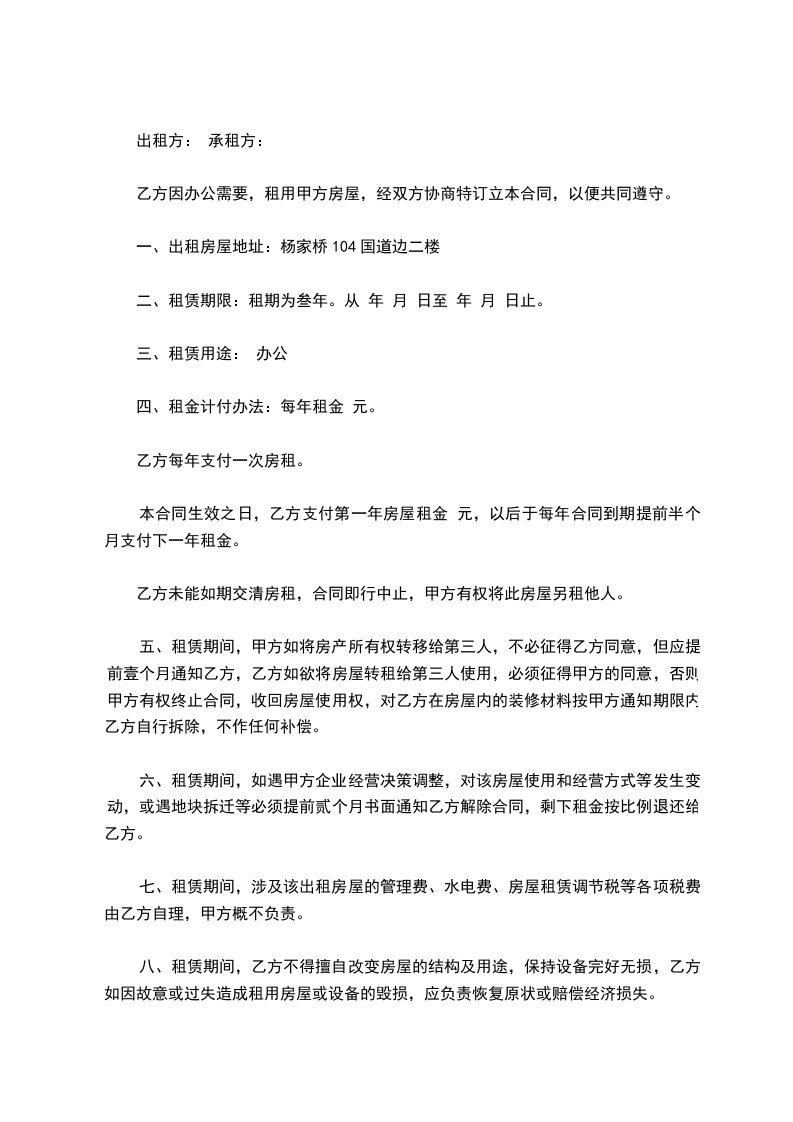 乙方因办公需要,租用甲方房屋,经双方协商特订立本合同,以便共同遵守。