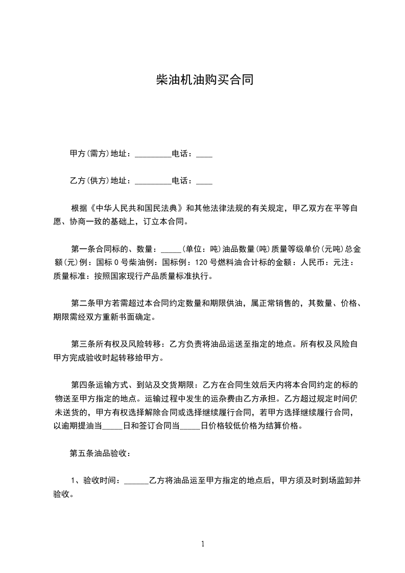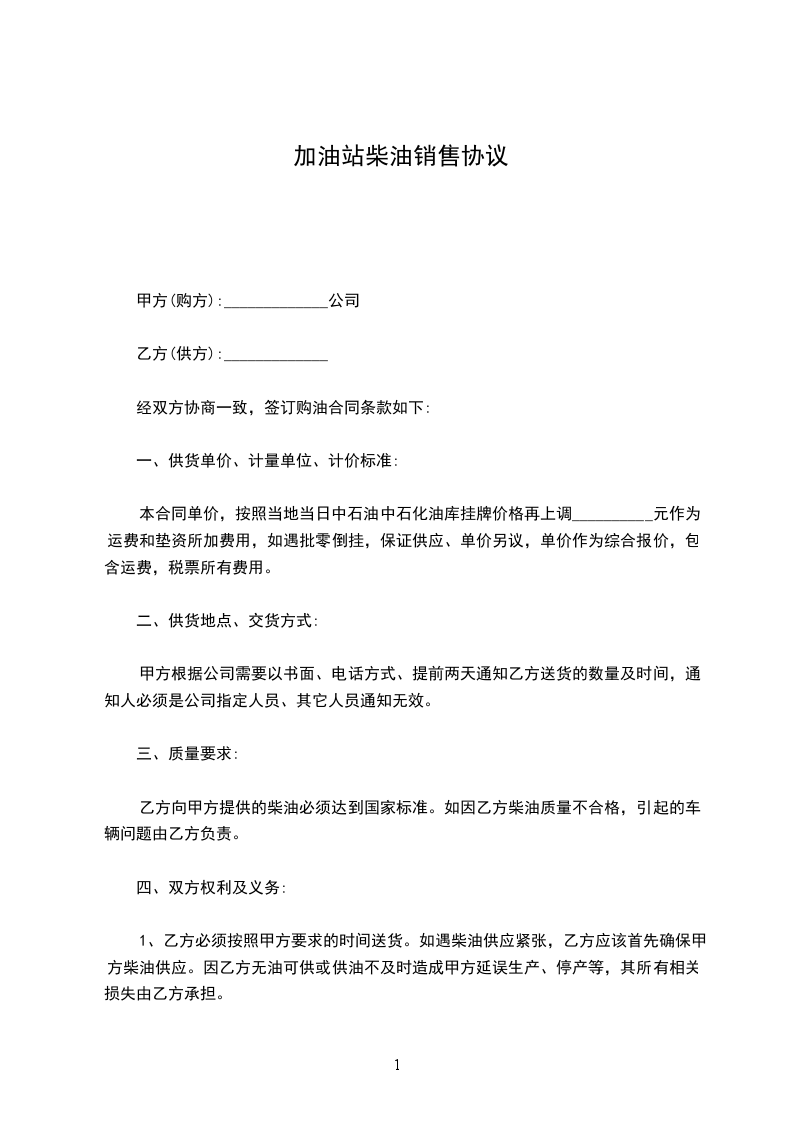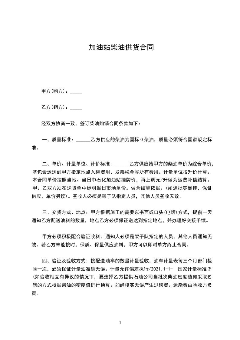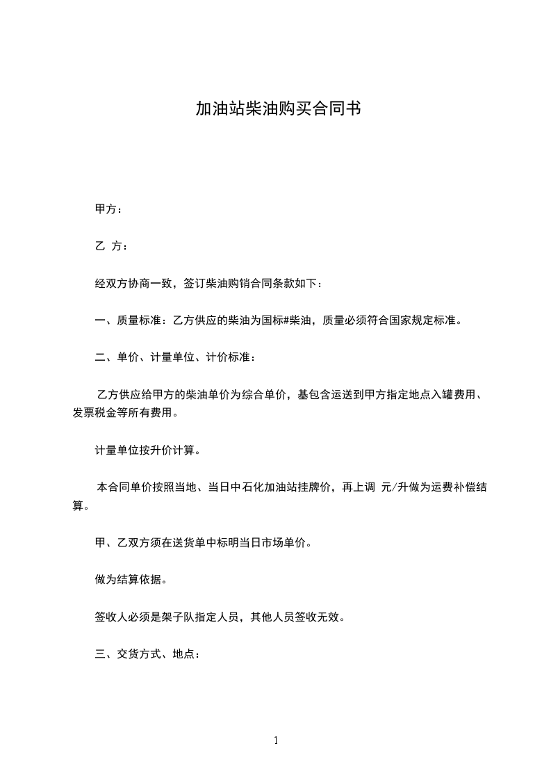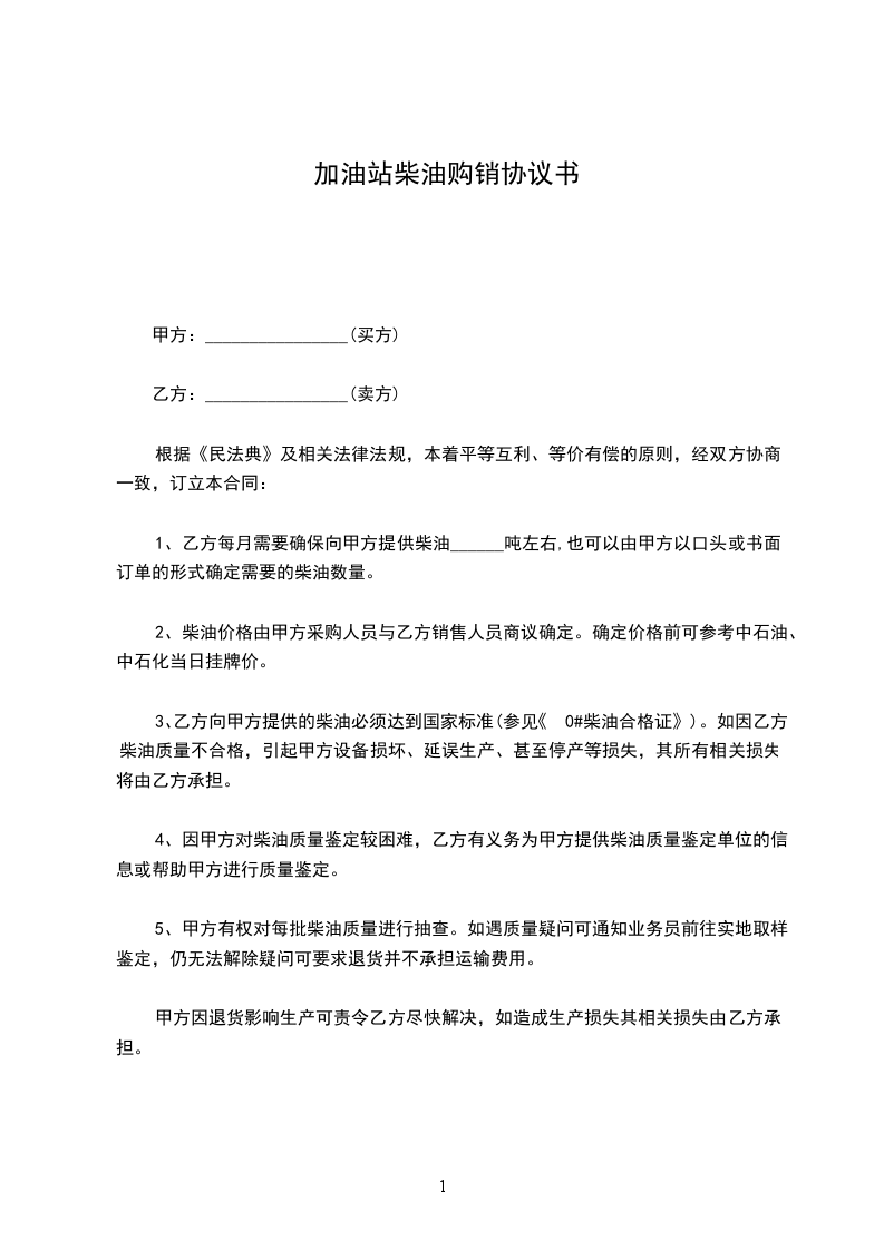 经双方协商一致,签订柴油购销合同条款如下:
