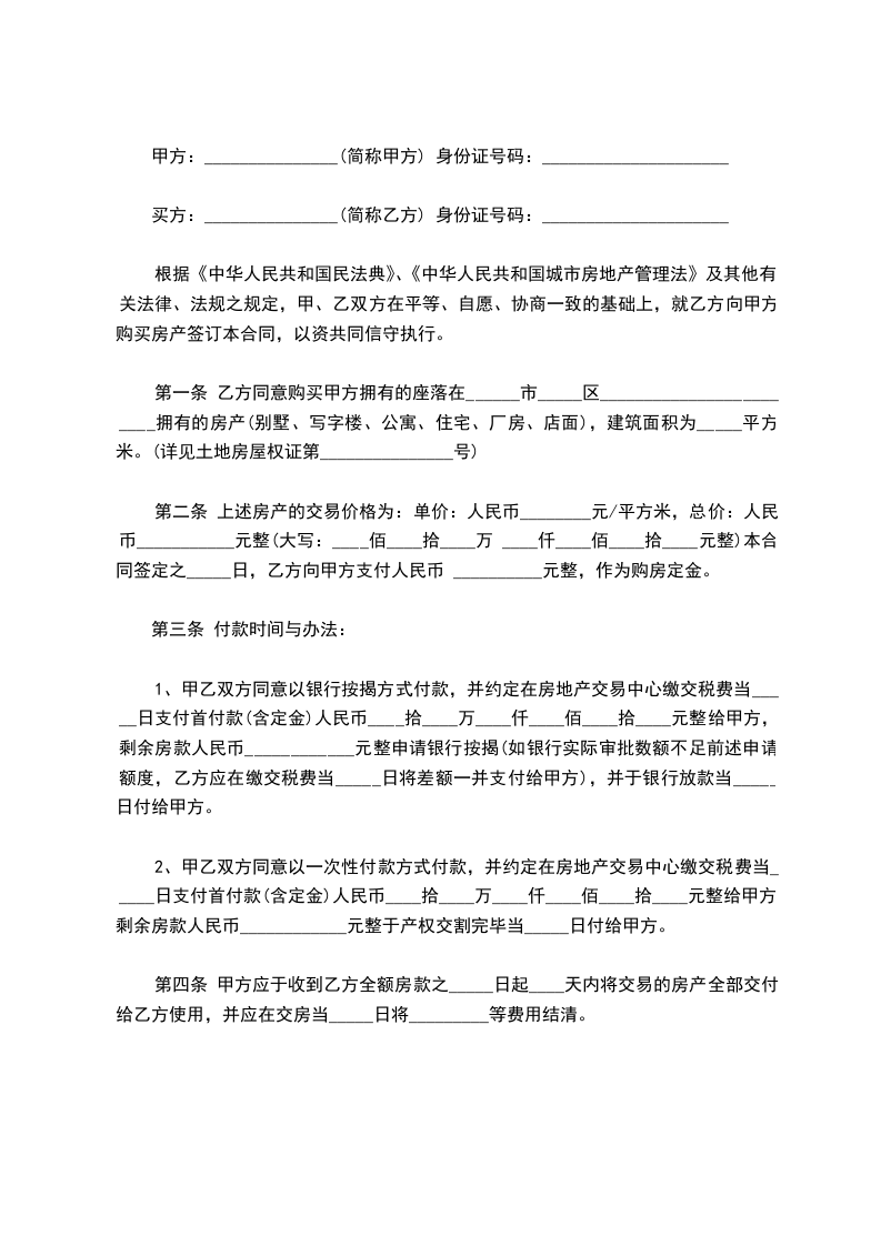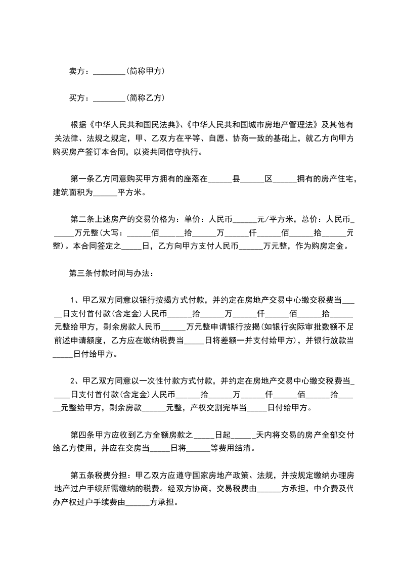 第一条甲方自愿将其房屋出售给乙方,乙方也已充分了解该房屋具体状况,并自愿买受该房屋。