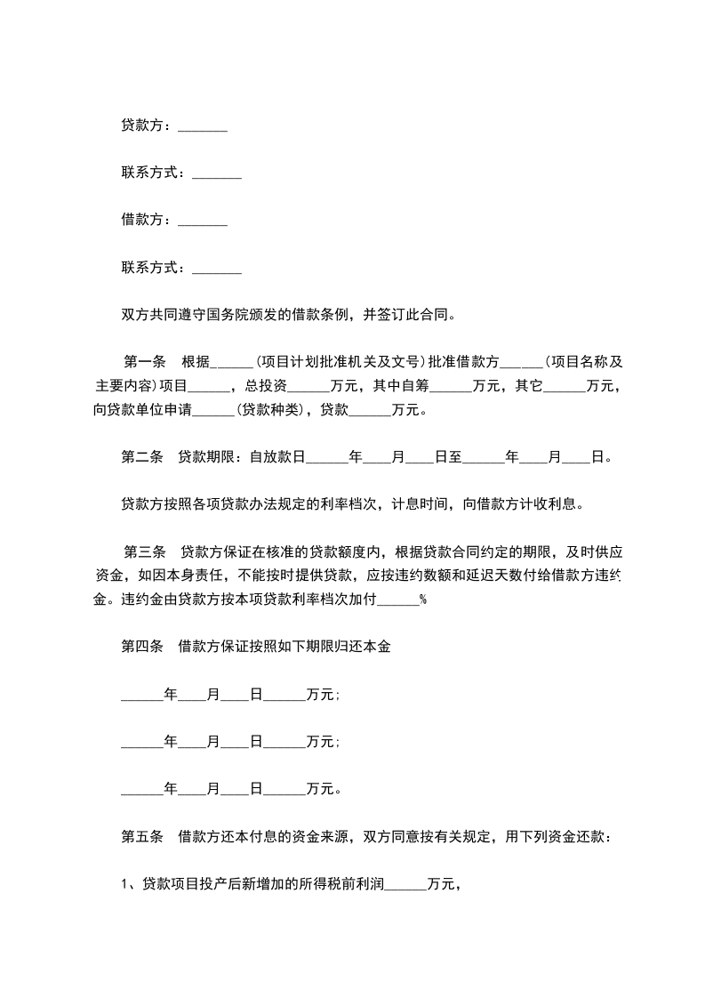 三、乙方提供贷款的期限是_________年_________个月。甲方保证从签订合同之日起至_________年_________月_________日止,还清全部本息,并附分次还款具体计划作为本合同的附件。