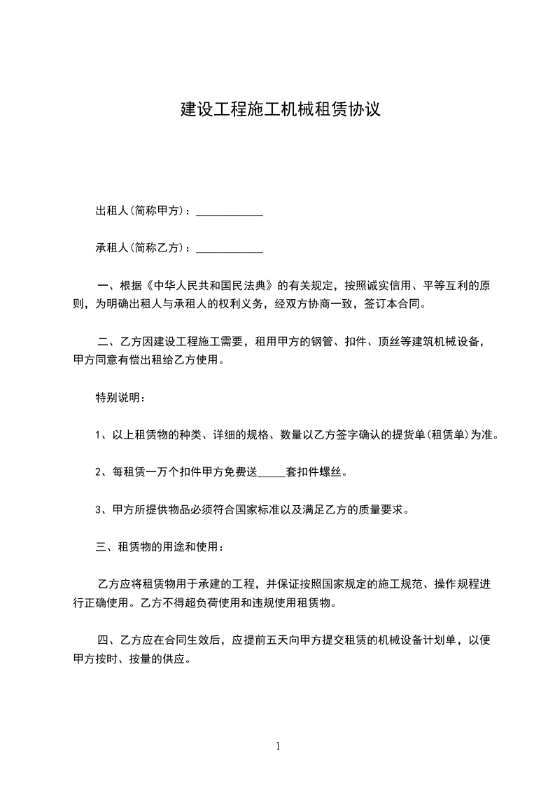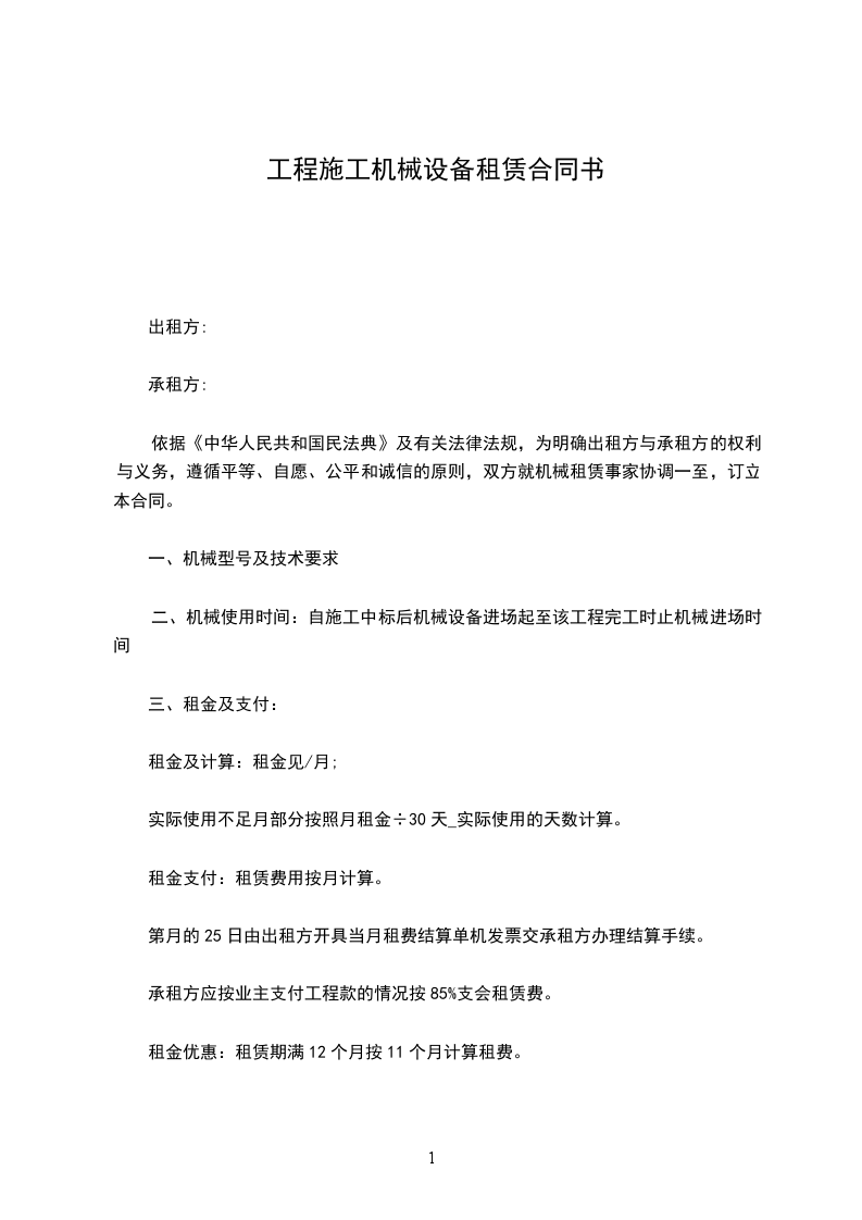 乙方因工程需要,自主选定租用甲方工程机械,经双方协商一致,签订本合同。
