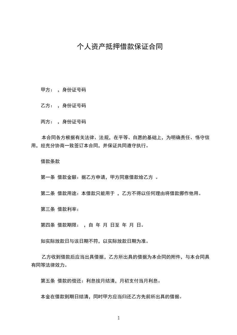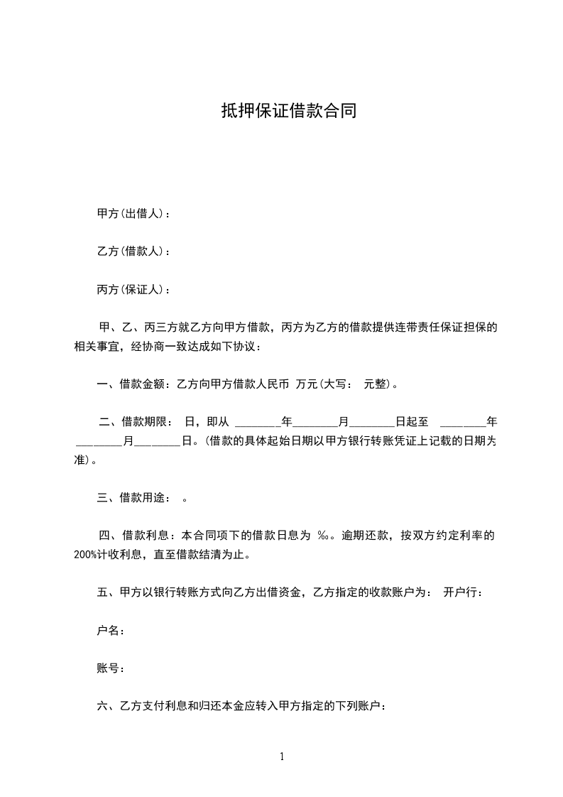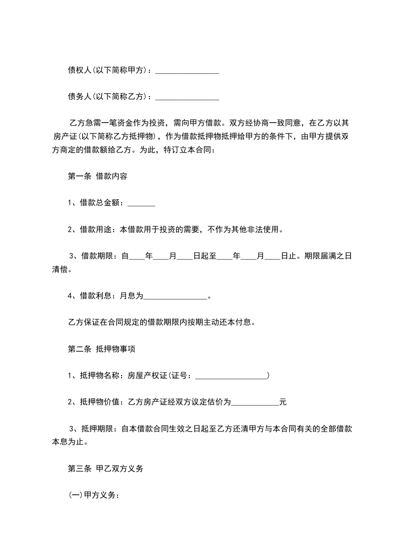 第八条 抵押物为 ,现抵押人同意以该资产的剩余价值作为抵押,为本《借款合同》下的借款做担保。