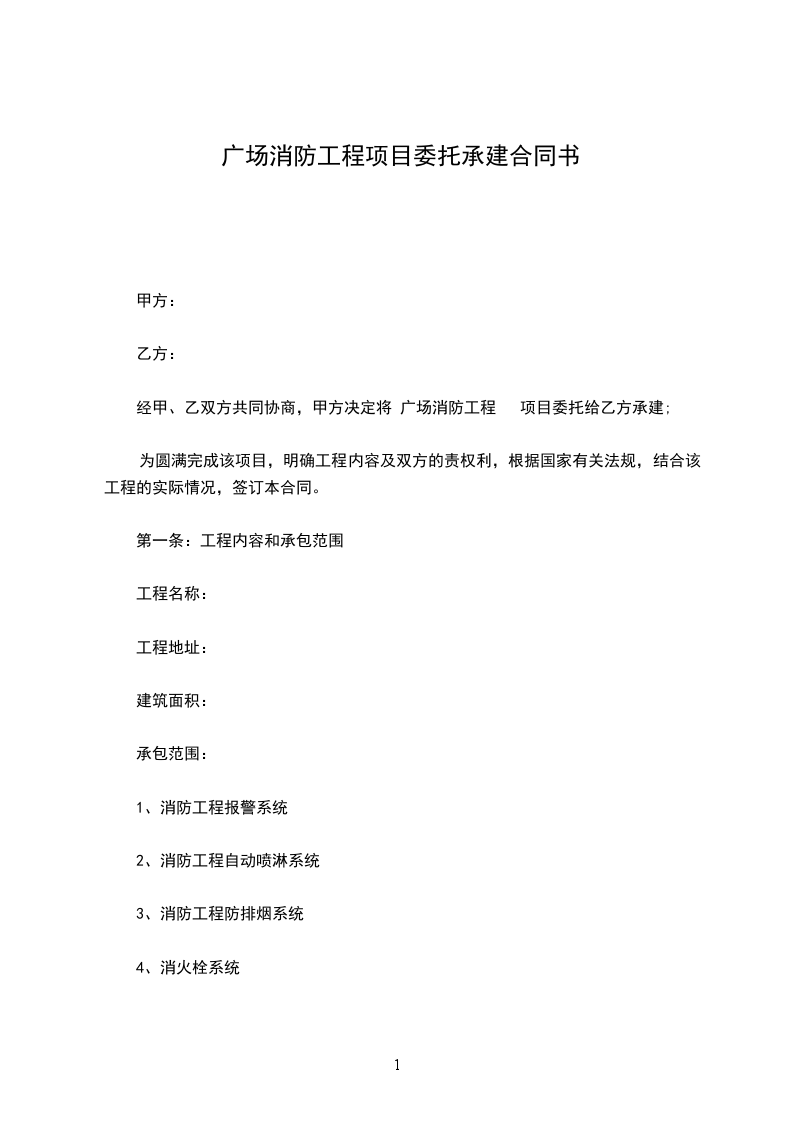 经甲、乙双方共同协商,甲方决定将 广场消防工程 项目委托给乙方承建;
