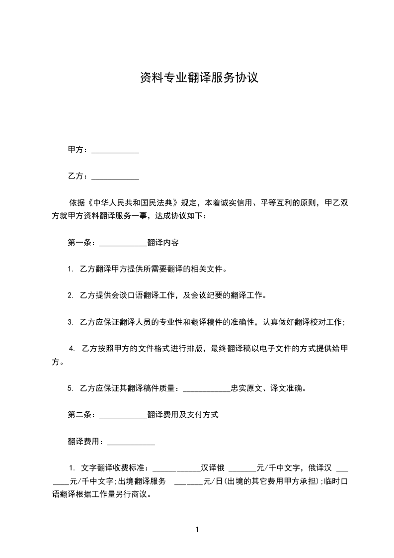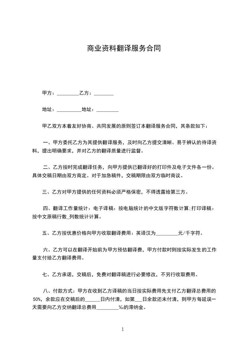 甲乙双方本着友好协商、共同发展的原则签订本翻译服务合同,其条款如下: