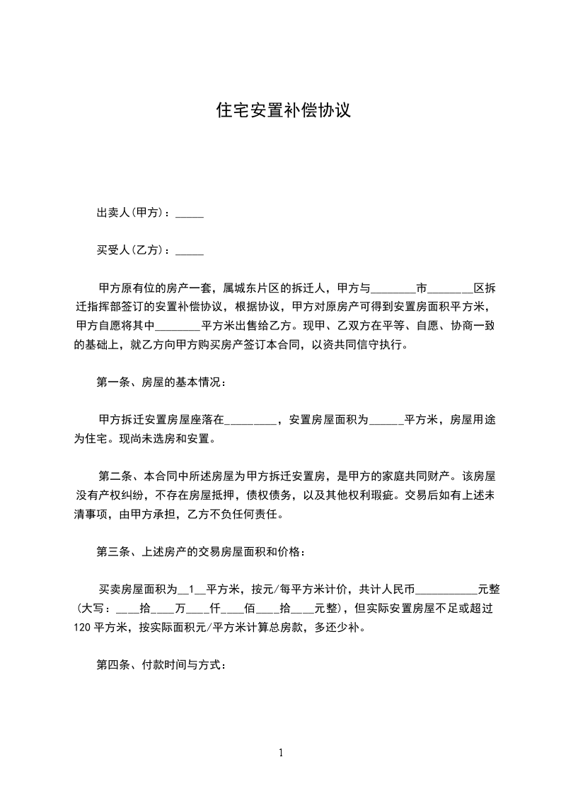 第三条 乙方家庭原人均居住面积_________平方米,现按安置人均居住面积达到_________平方米标准。