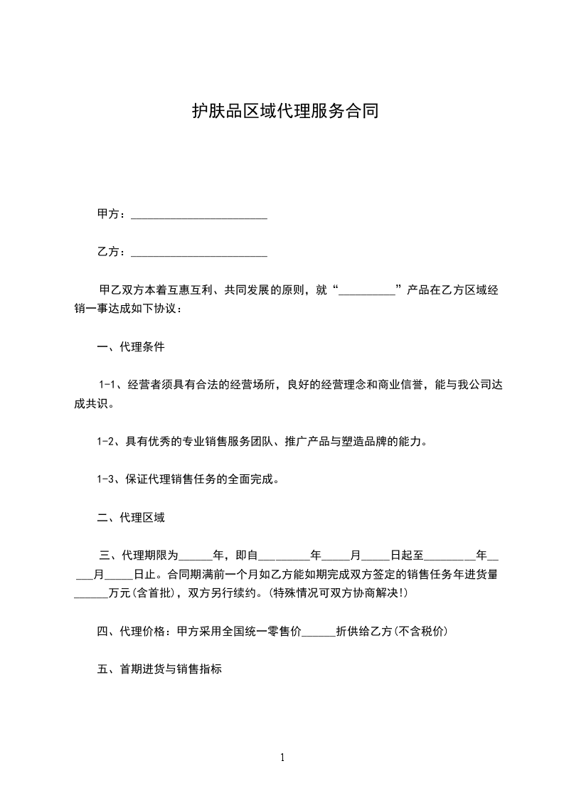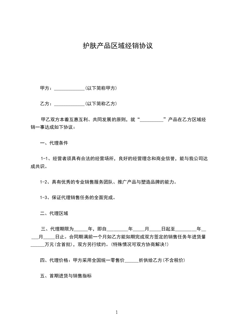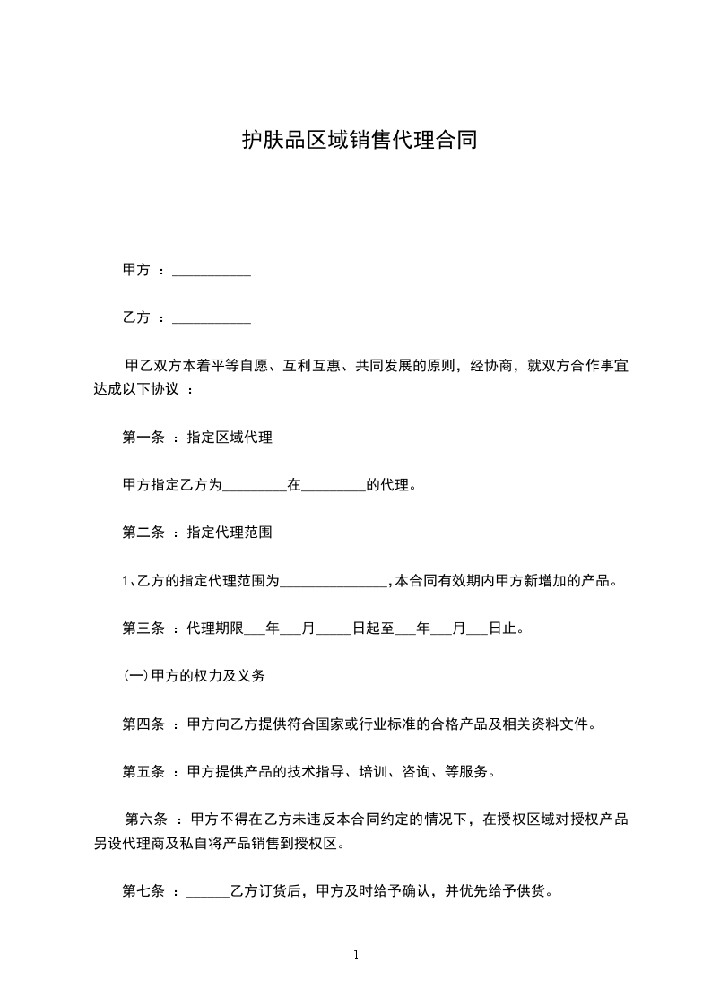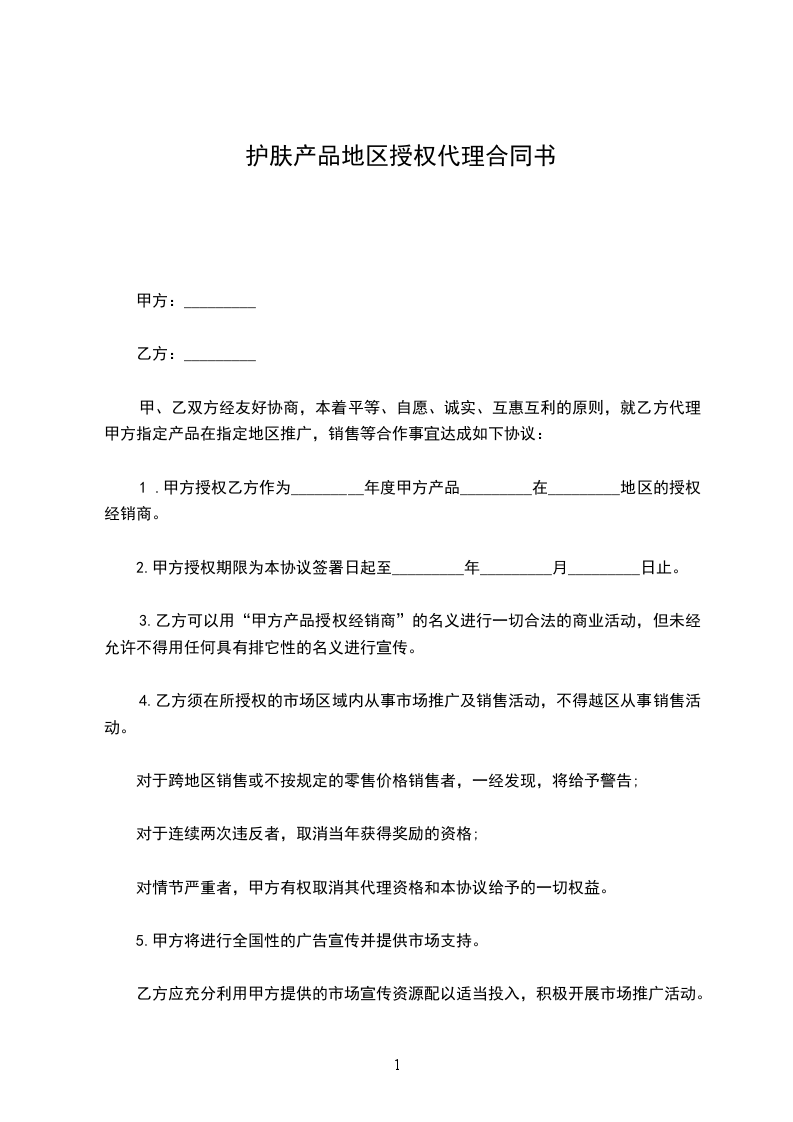 1 .甲方授权乙方作为_________年度甲方产品_________在_________地区的授权经销商。