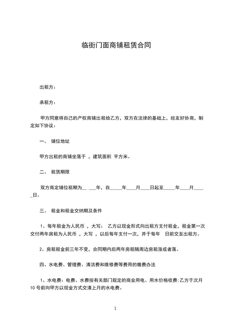 1、每年租金为人民币 ,大写: 乙方以现金形式向出租方支付租金,租金第一次交付两年房租为人民币 ,大写 ,以后每年支付一次,并于每年 日前交至出租方。