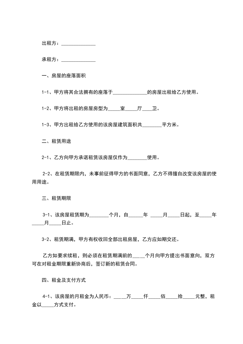 1-2、甲方将出租的房屋房型为_____室_____厅____卫。