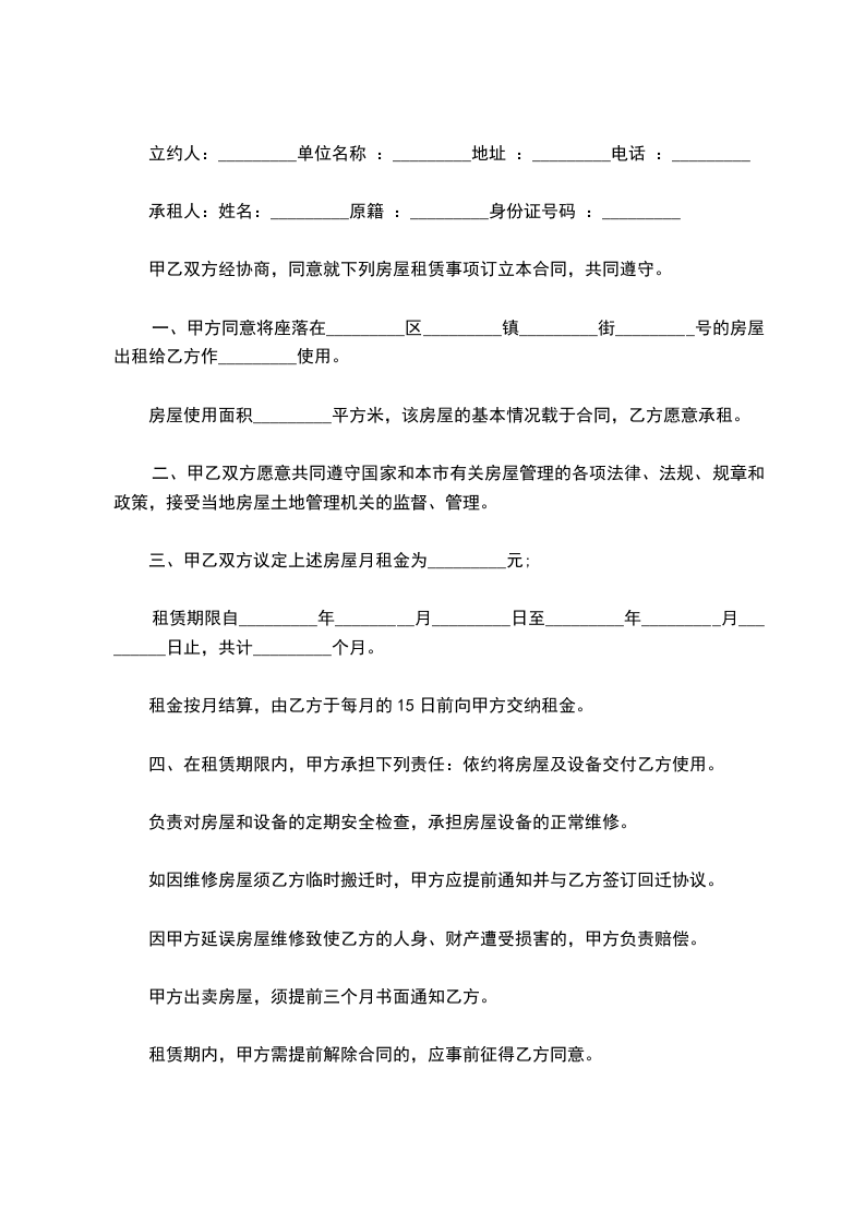 承租人:姓名:_________原籍 :_________身份证号码 :_________