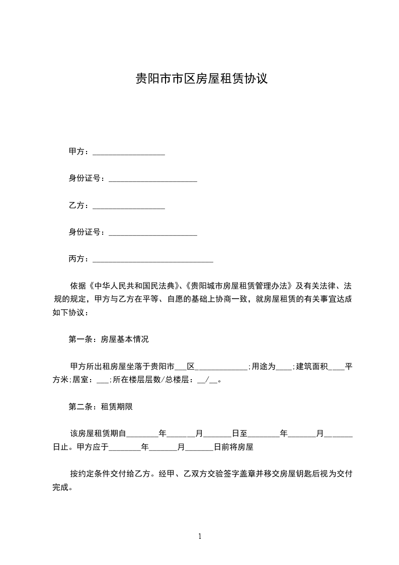 依据、《贵阳市城市房屋租赁管理办法》及有关法律、法规的规定,甲方与乙方在平等、自愿的基础上经协商一致,就房屋租赁的有关事宜达成协议如下:
