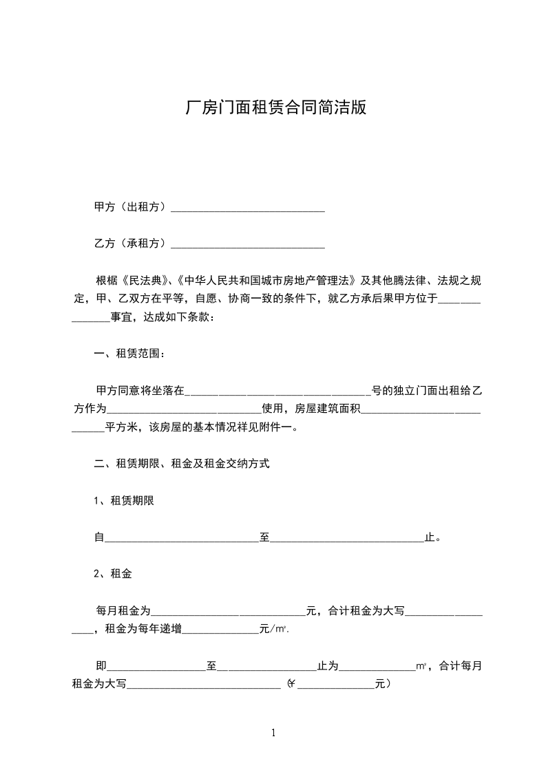 一、被租厂房为_____________________________门面房_____间。