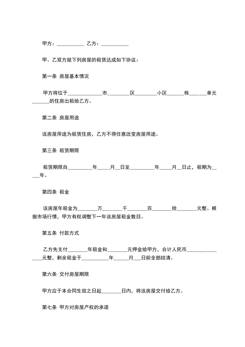 该房屋年租金为________万________千________百________拾________元整。根据市场行情,甲方有权调整下一年该房屋租金数目。