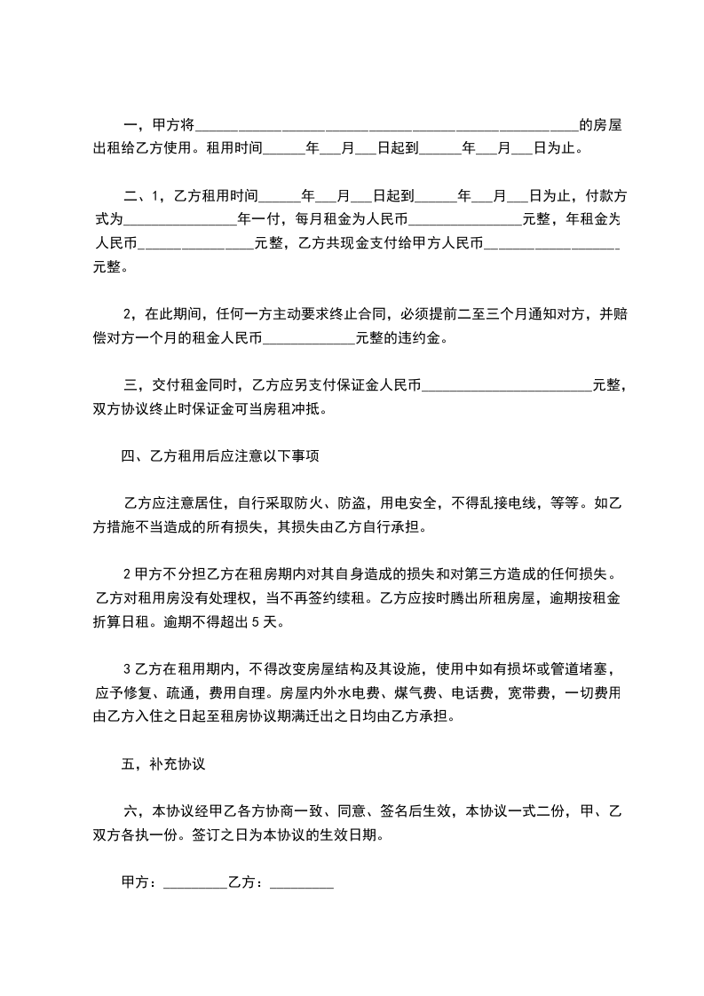 五、房屋租赁期为______,______年______月______日至______年______月______日。