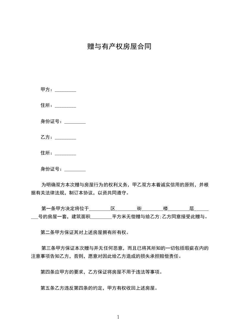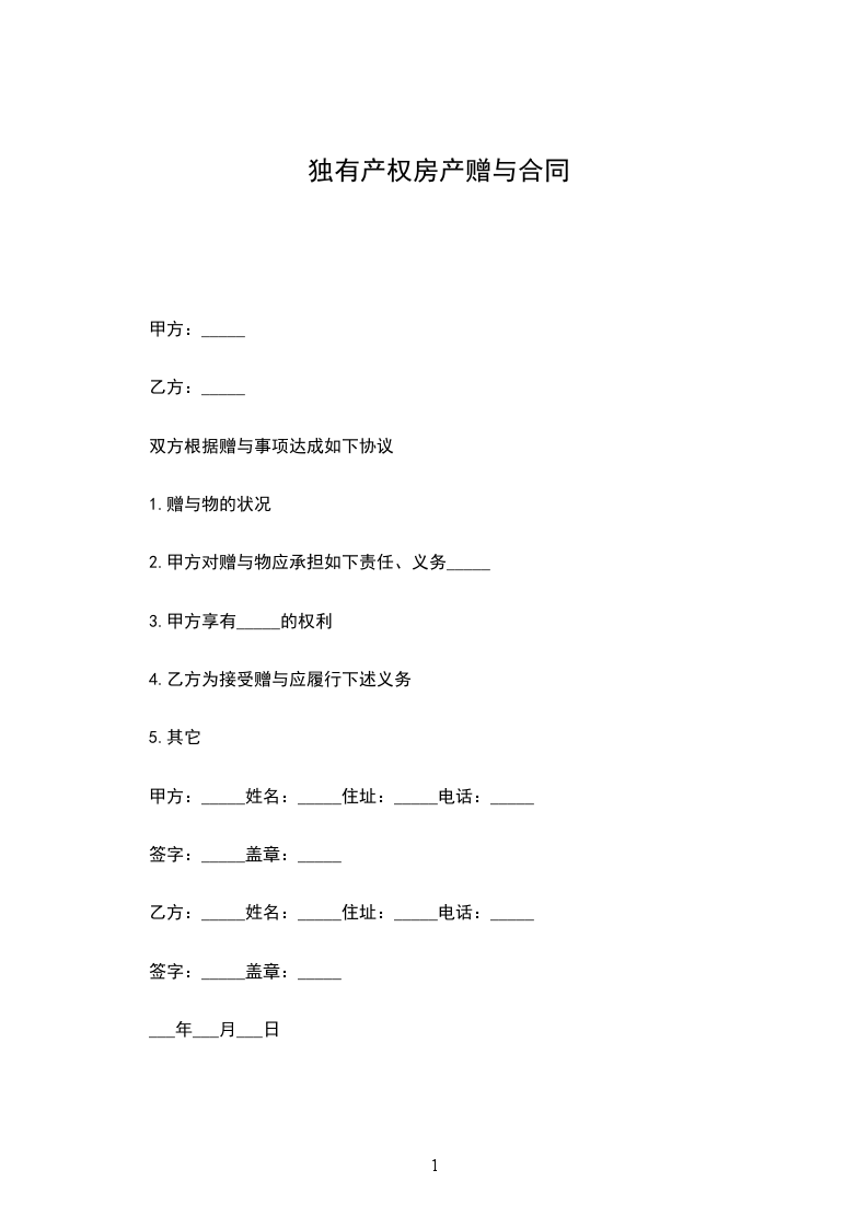 甲方:_____姓名:_____住址:_____电话:_____