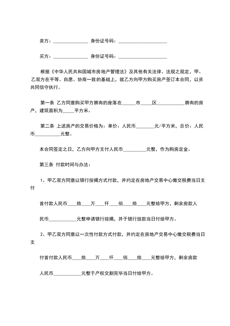 第一条 乙方同意购买甲方拥有的座落在______市_____区____________拥有的房产,建筑面积为_____平方米。