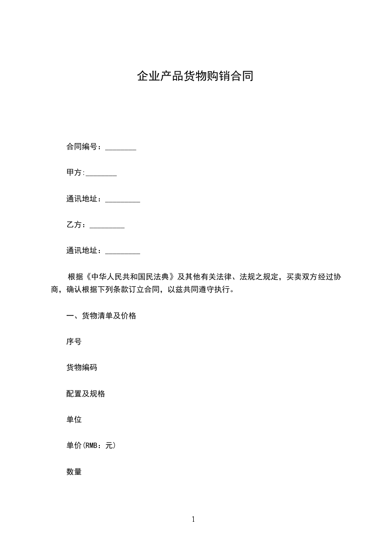 产品代码:_____________________________产品名称:_____________________________规格型号:_____________________________数量:_________________________________单价:_________________________________金额:_________________________________合计金额____________________________________