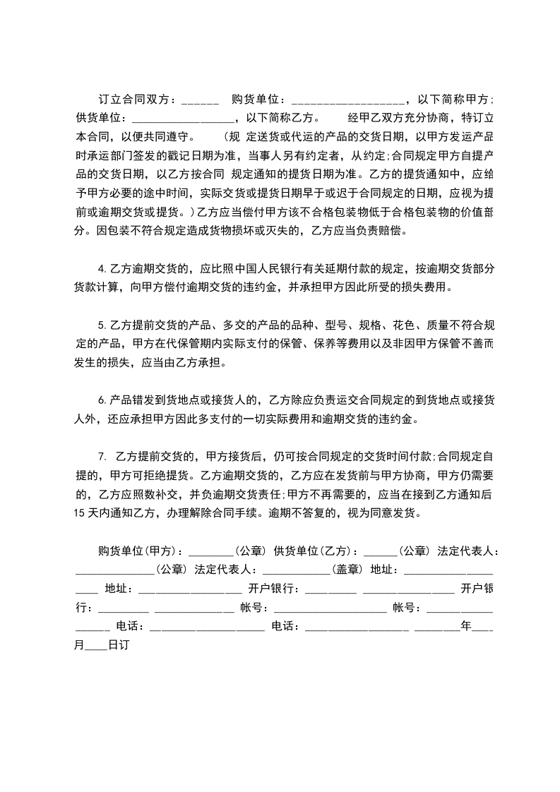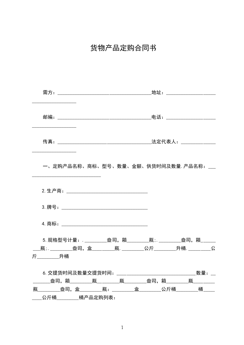 一、定购产品名称、商标、型号、数量、金额、供货时间及数量.产品名称:_______________________________