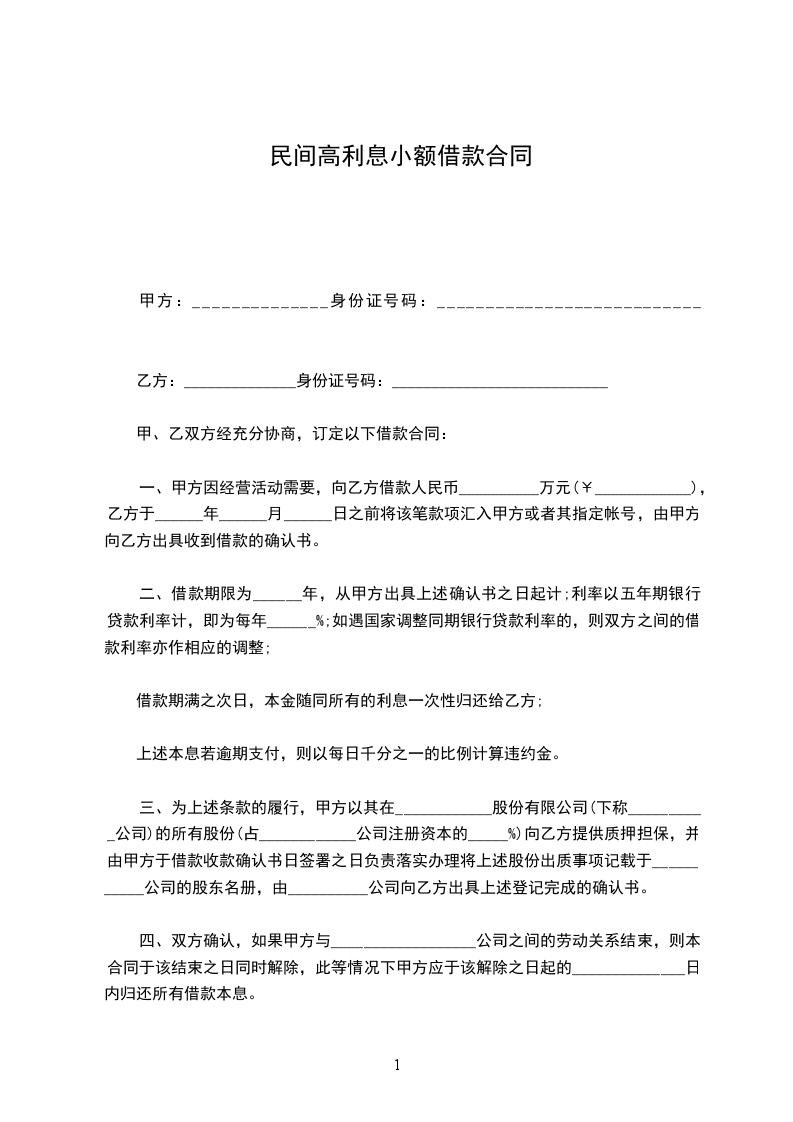 4.乙方未按合同规定及时发放贷款,给甲方造成损失的,乙方应按影响天数和数额,每天付给甲方万分之_____________的违约金。