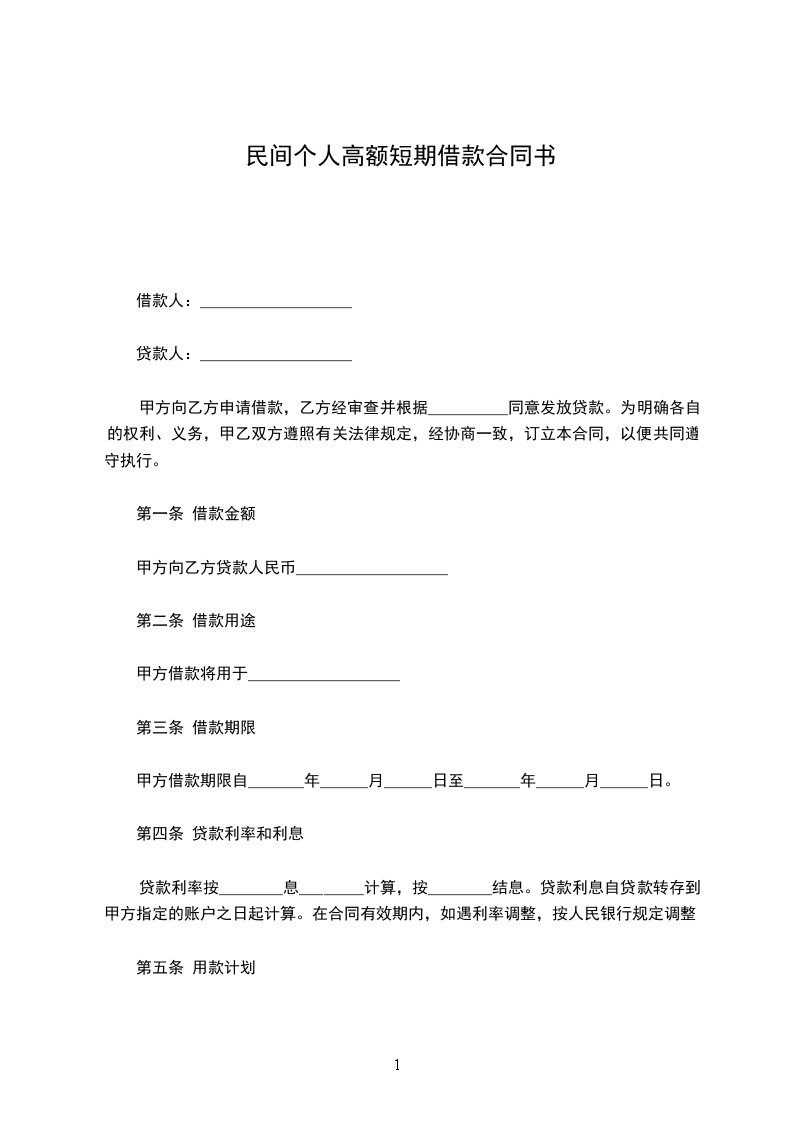 甲方向乙方贷款人民币___________________
