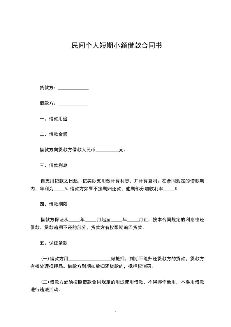 第一条 借款金额