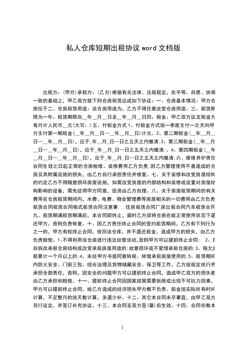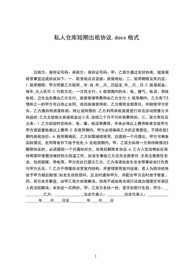 一、租赁库房情况 甲方将位于 的仓库租赁给乙方使用,面积为_________平方米;本租赁物的功能为_____________ , 包租给乙方使用。如乙方需转变使用功能,须经甲方书面同意后方可执行,因转变功能所需办理的全部手续及费用由乙方自行负责。本租赁物采取包租方式,由承租方自行管理。