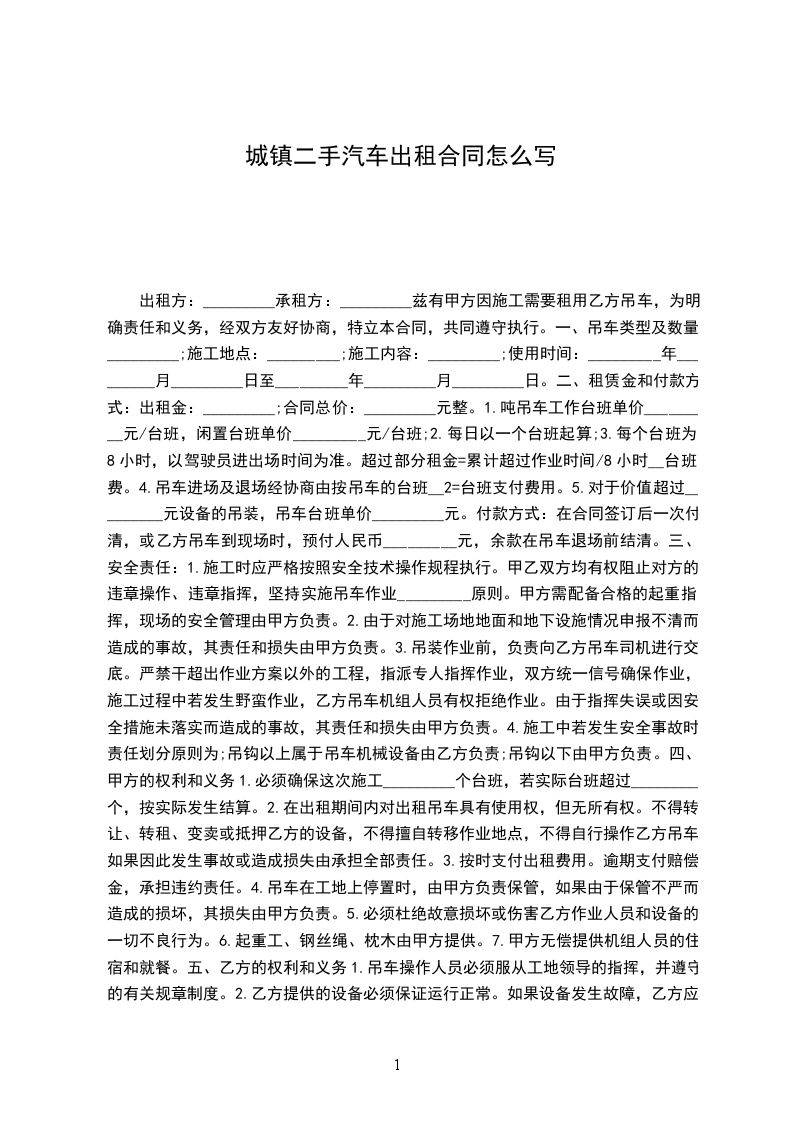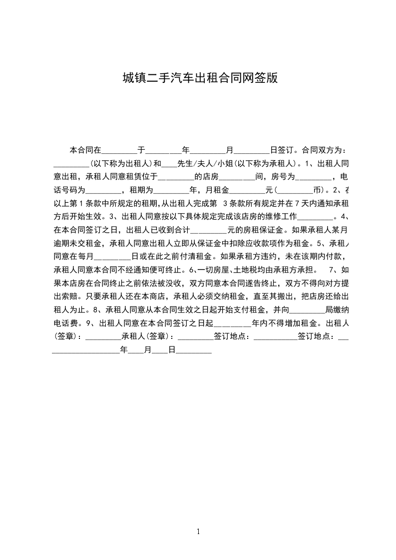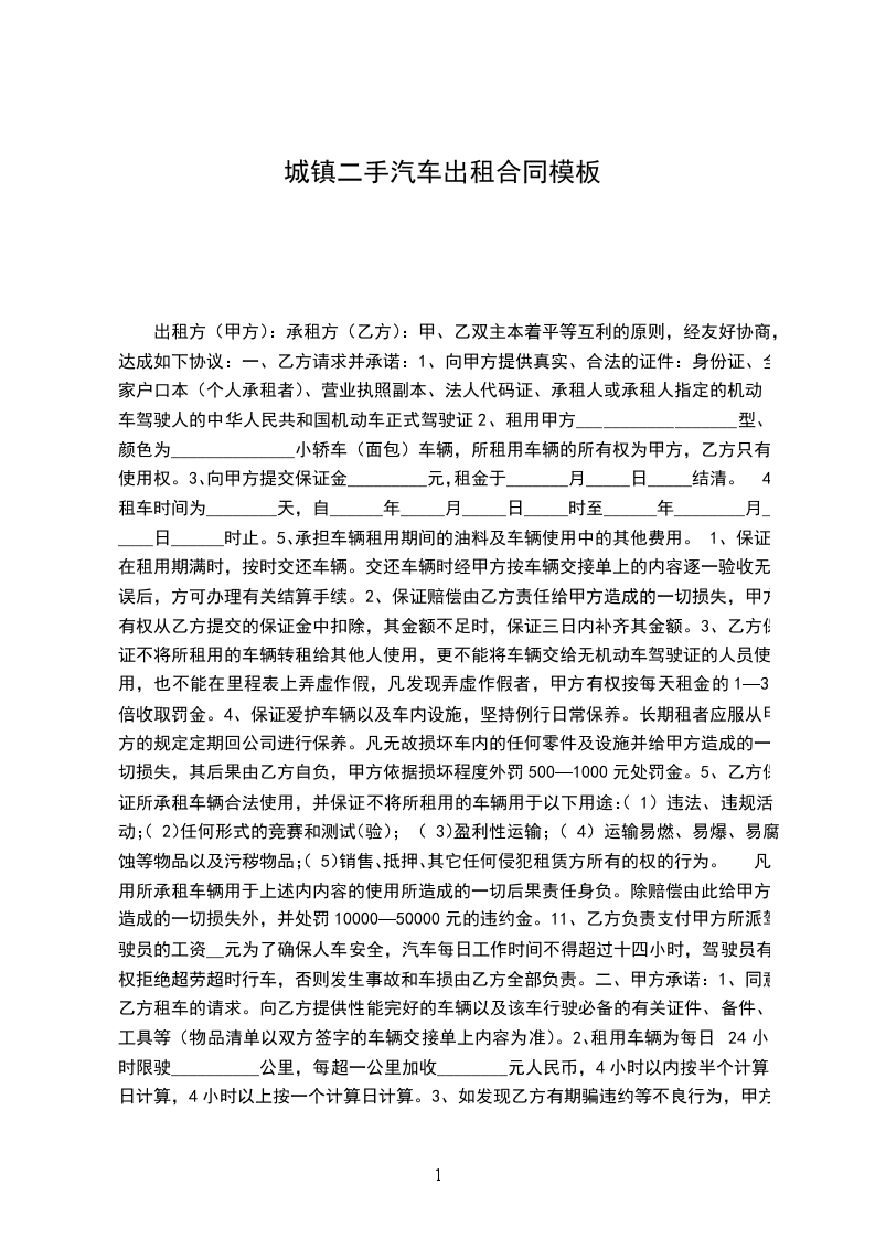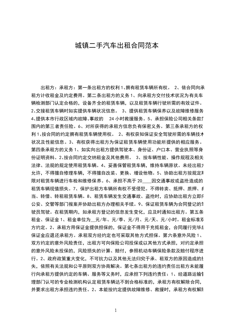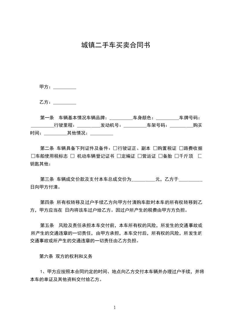 第一条 车辆基本情况车辆品牌:__________车身颜色:__________车牌号码:__________行驶里程:__________发动机号:__________车架号码:__________购买时间:__________其他情况:__________