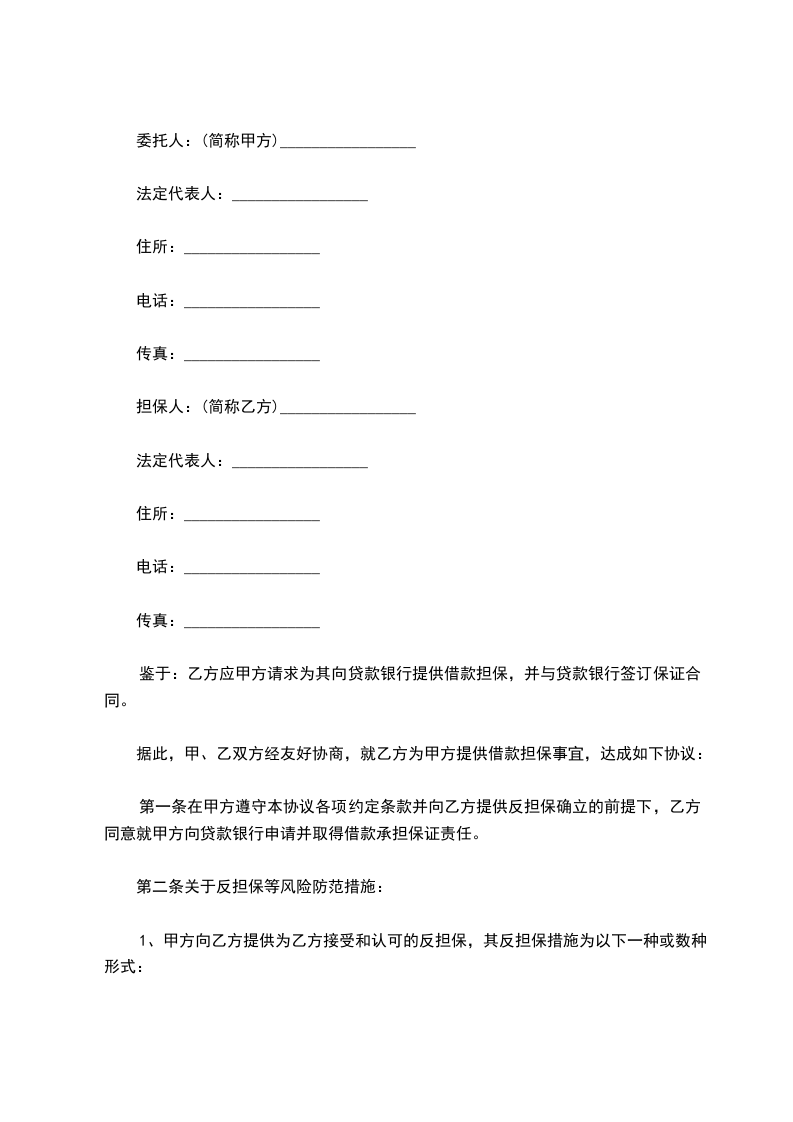 根据甲方与乙方签订的编号 的委托借款担保合同,乙方同意为甲方 提供借款人民币 的担保业务,丙方自愿以有权处分的财产作为抵押物,为甲方向乙方提供反担保保证。