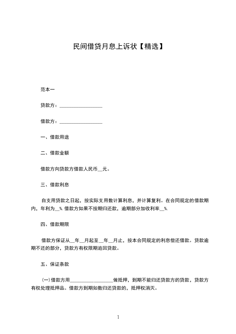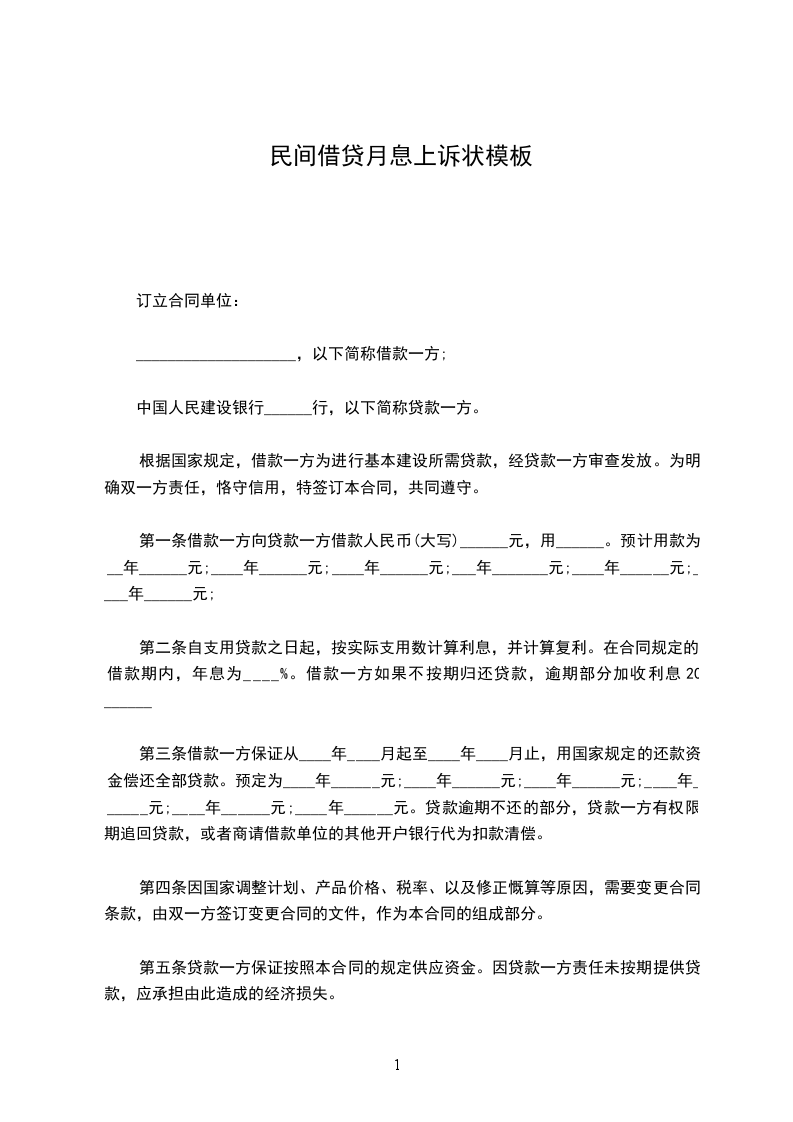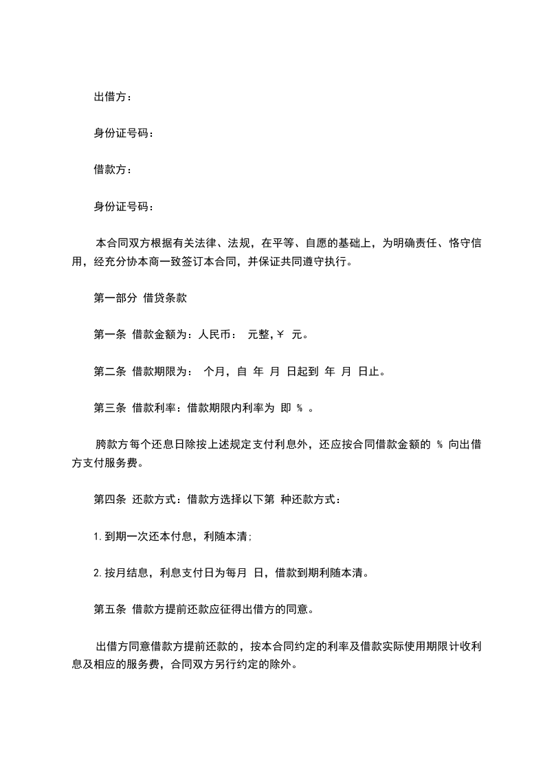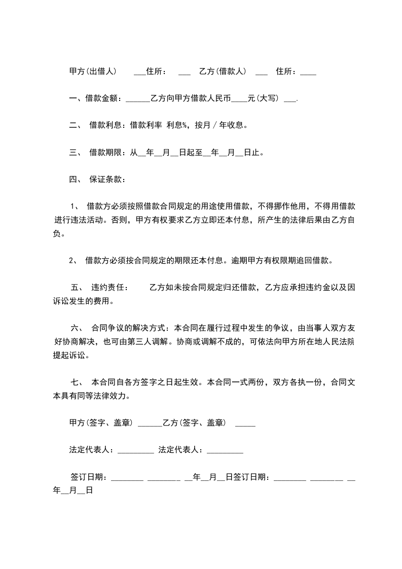 第一条 借款金额为:人民币: 元整,¥ 元。