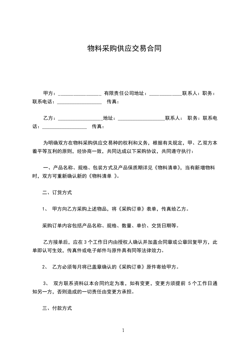 1、 甲方向乙方采购上述物品,将《采购订单》表单,传真给乙方。