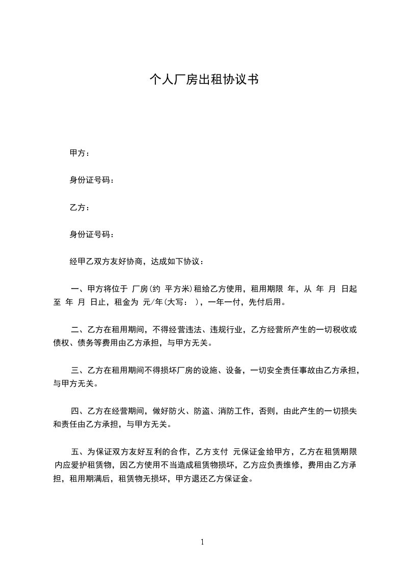 1、租赁期间,甲、乙双方都应遵守国家的法律法规,不得利用厂房租赁进行非法活动。