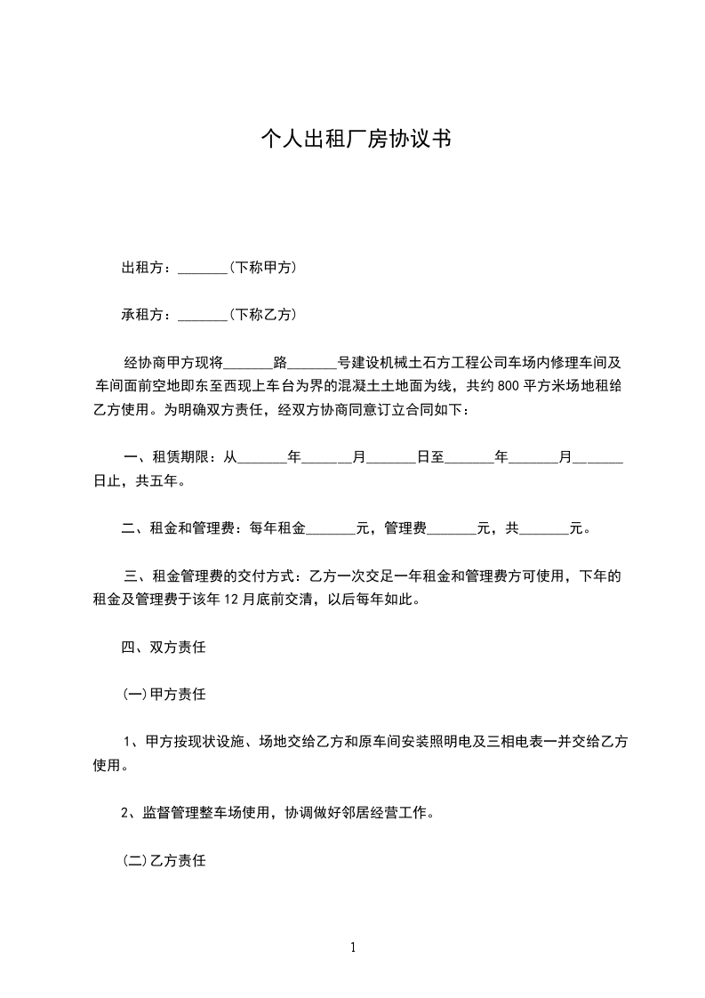 2、厂房租赁自 年 月 日起,至 年 月 日止。租赁期 年。