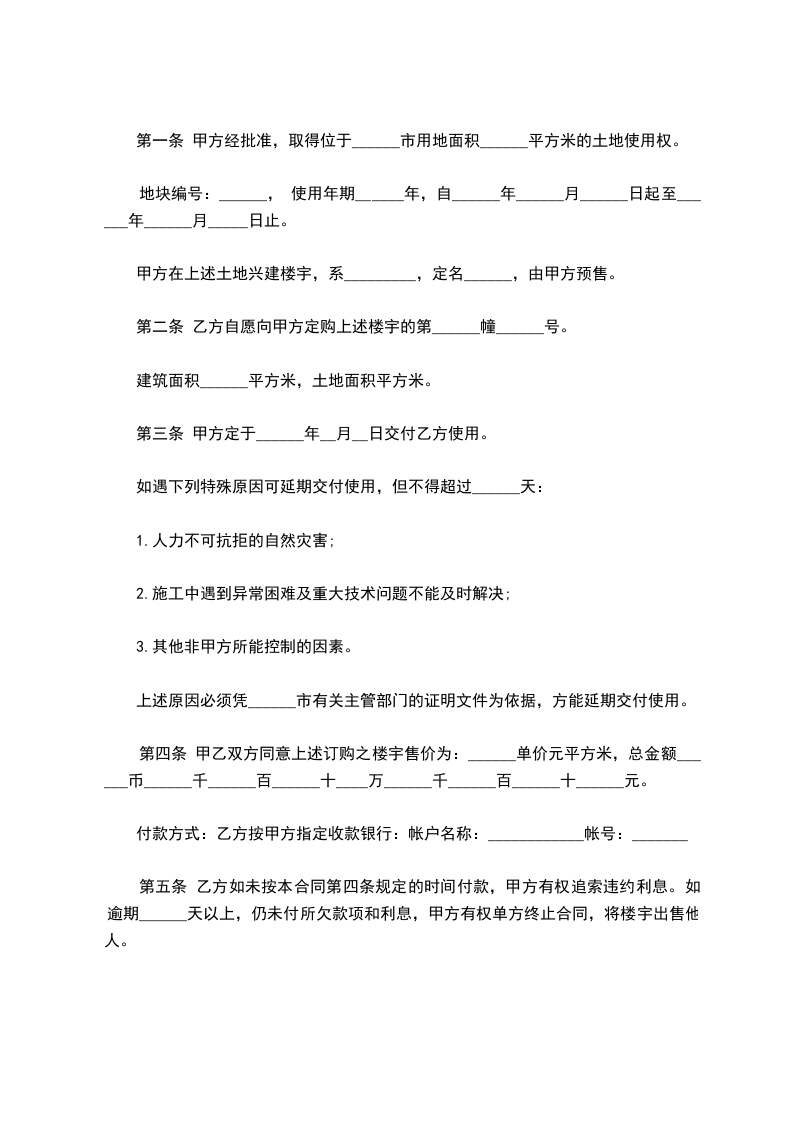 第二条 乙方自愿向甲方定购上述楼宇的第______幢______号。