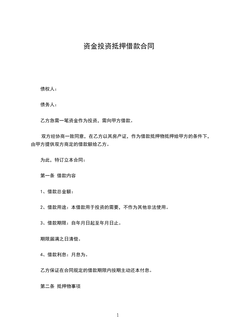乙方急需一笔资金作为投资,需向甲方借款。
