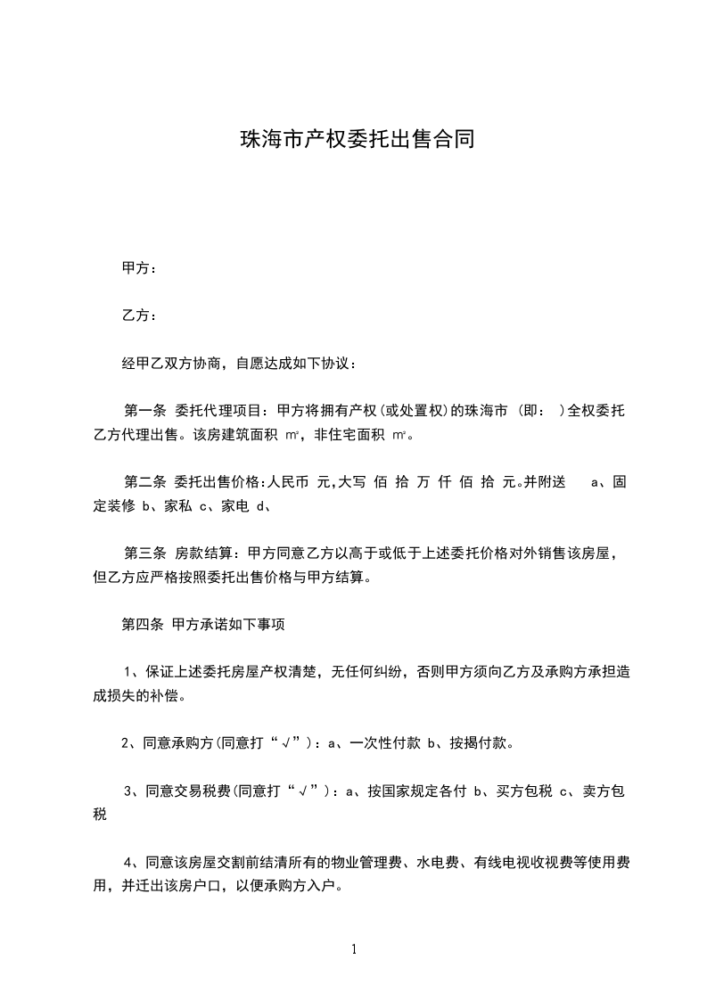 第一条 甲方经过对珠海市的详细考察,确定购买该房屋,并全权委托乙方代理购房事宜。
